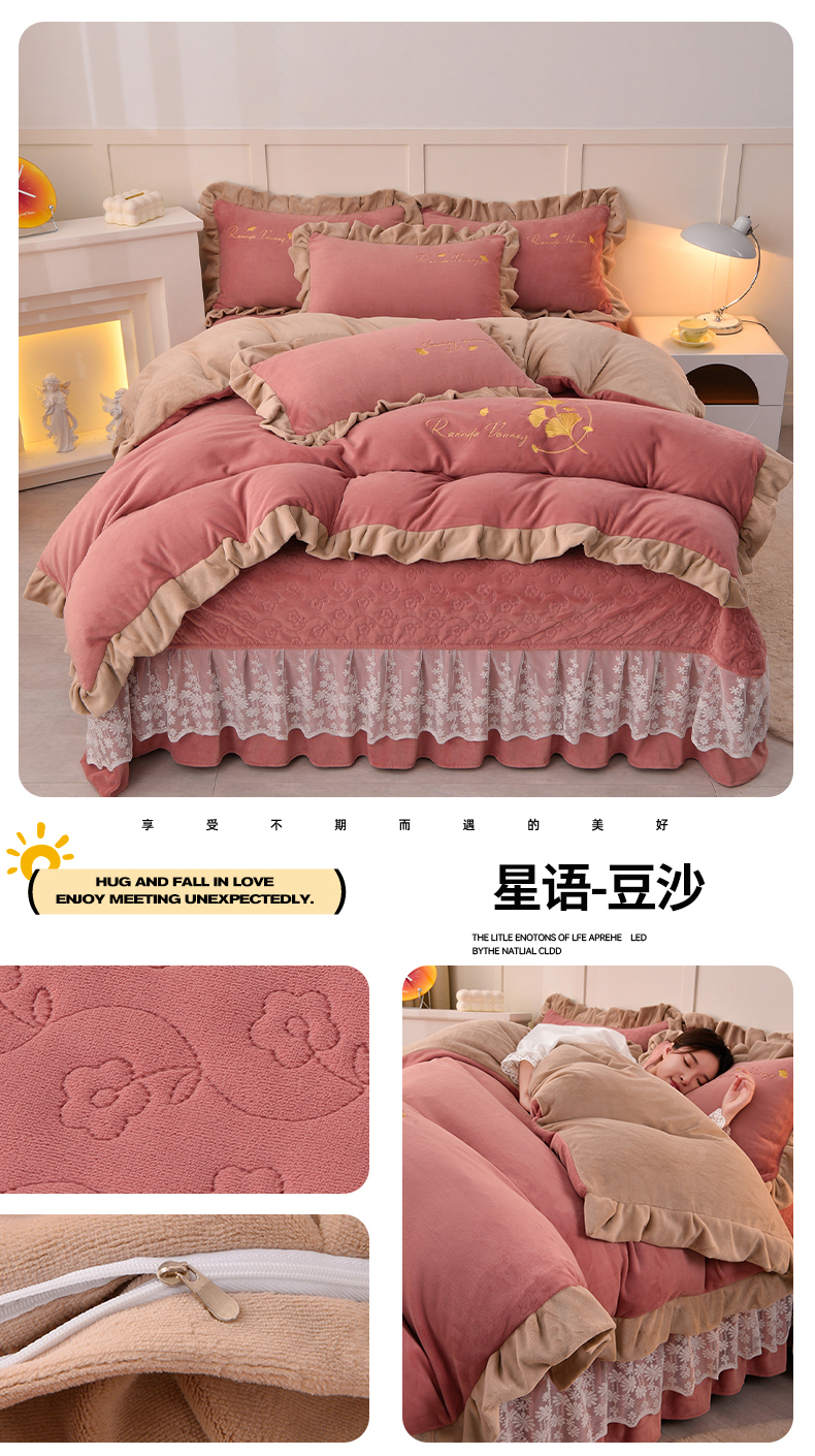 (总)湘雪家居 2025新款高克重雕花牛奶绒四件套,梦娜-宾利兰,梦娜-黛玉粉,梦娜-芦苇咖,梦娜-浅绿,霜雪款-繁枝花开,霜雪款-粉玉色,霜雪款-复古灰,霜雪款-青竹绿,霜雪款-泫雅紫,霜雪款-胭脂粉,霜雪-秋叶卡