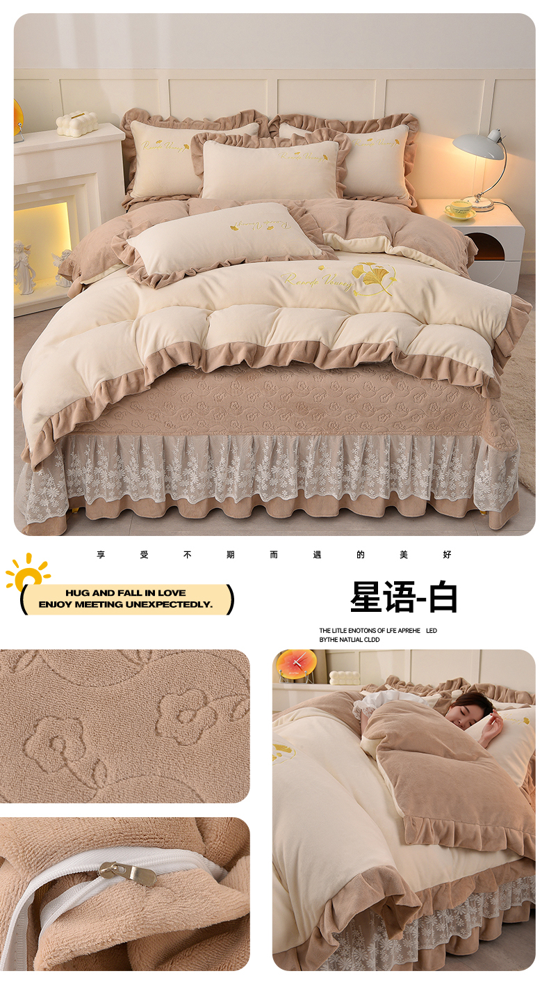 (总)湘雪家居 2025新款高克重纯色刺绣牛奶绒床盖款星语系列四件套-提供买家秀