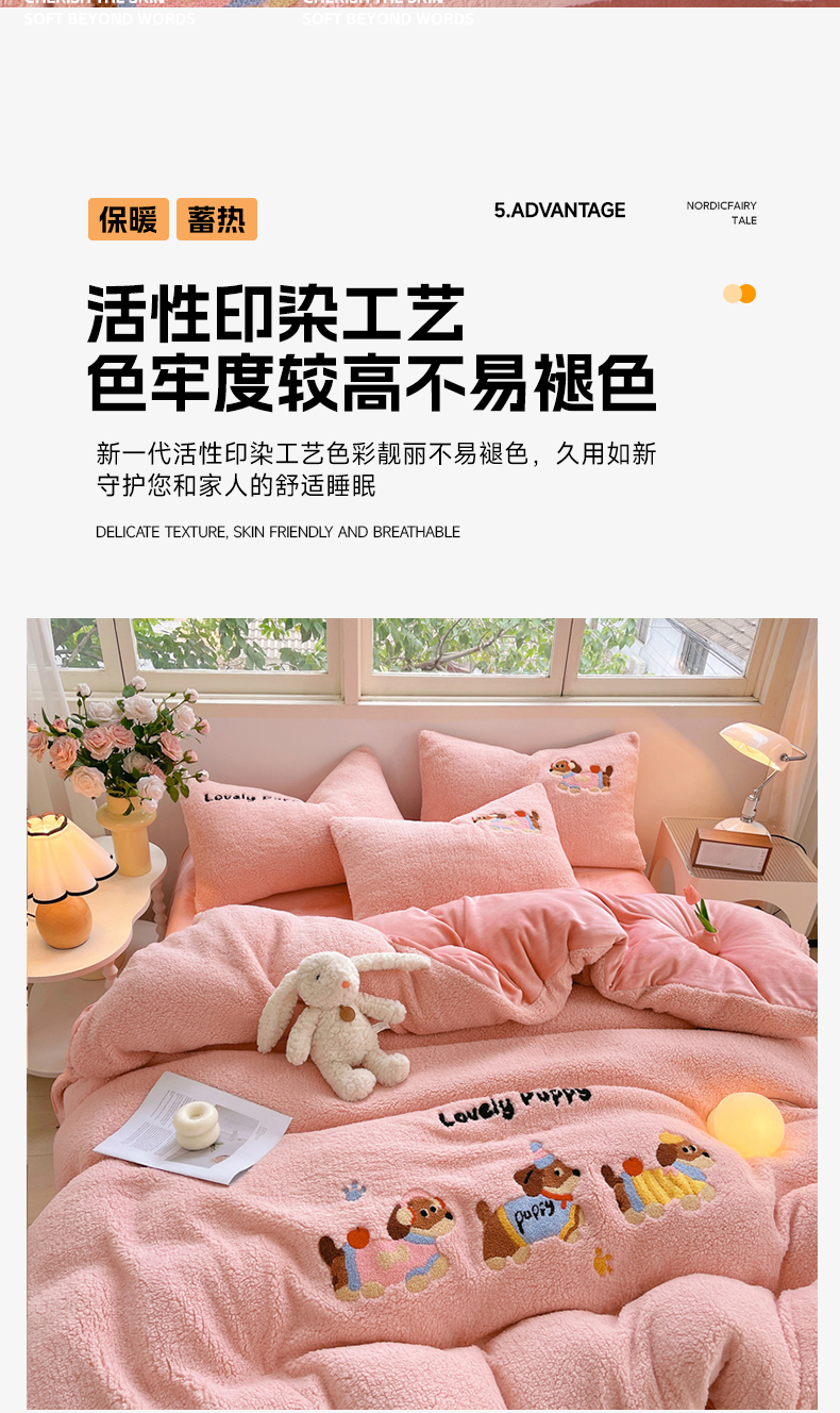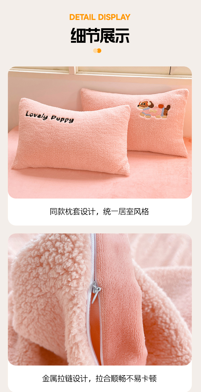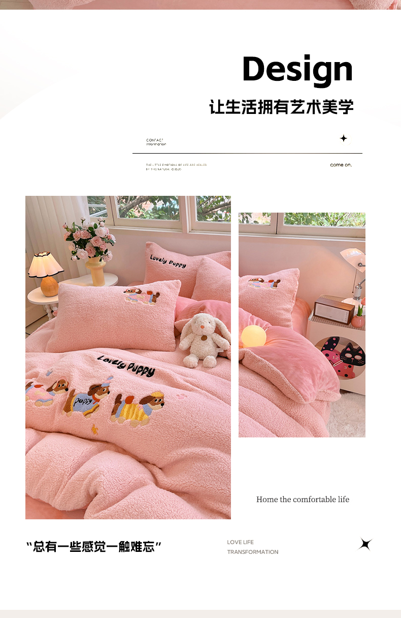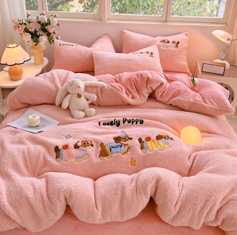 商品名称:牵依 2025新款羊羔绒牛奶绒毛巾绣四件套 腊肠狗