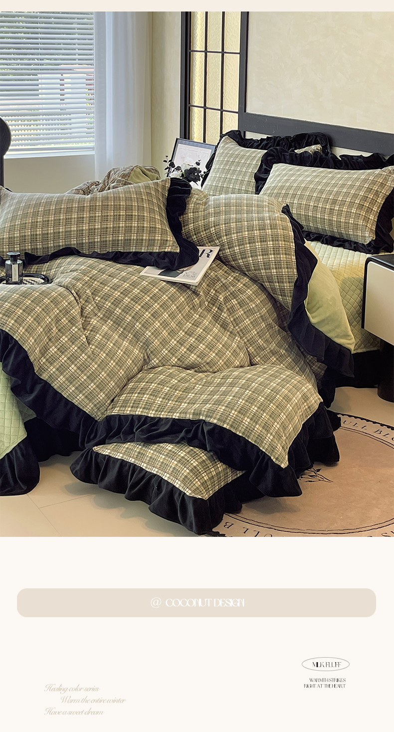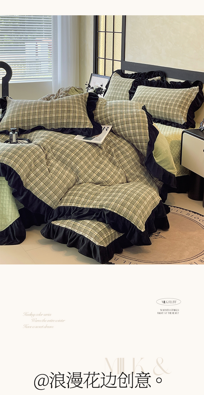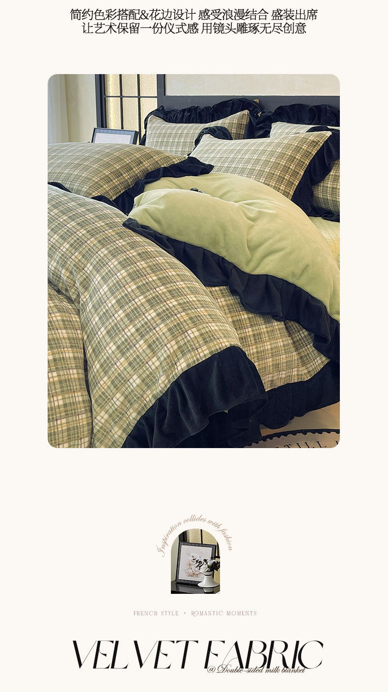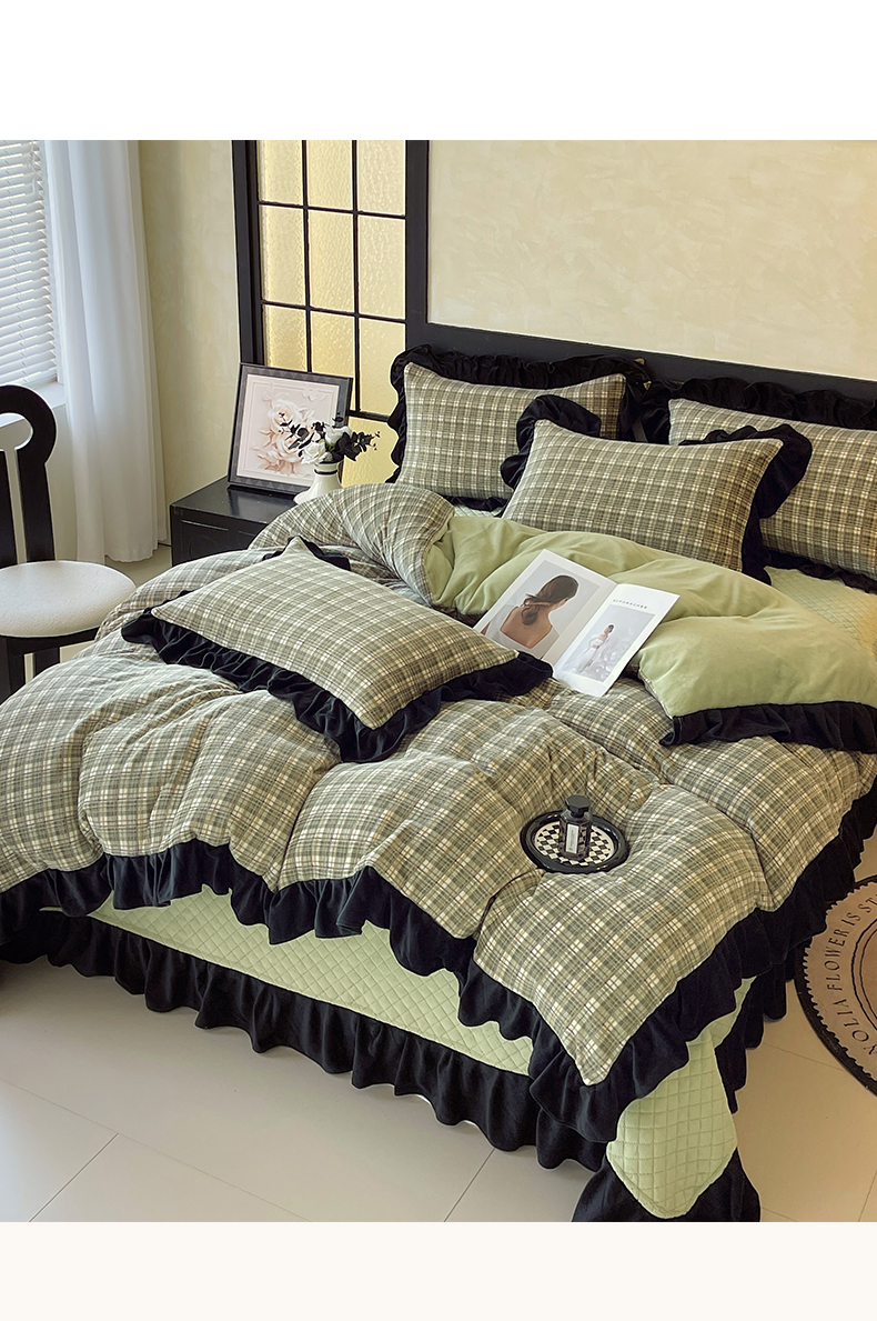 慕希家纺 2025新款高克重牛奶绒花边床盖款四件套-格律时尚 格律时尚-绿