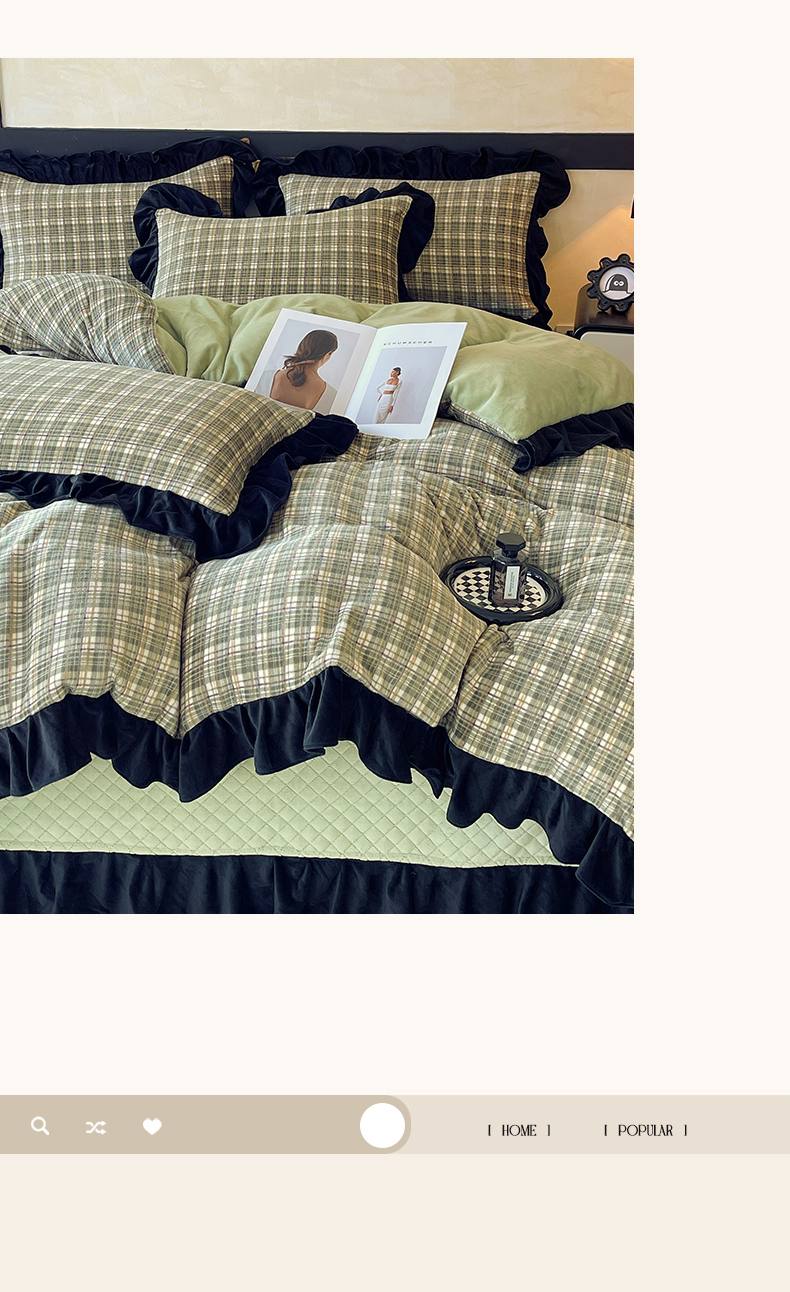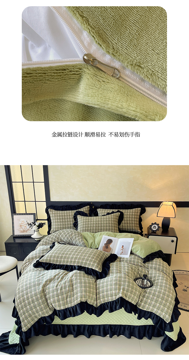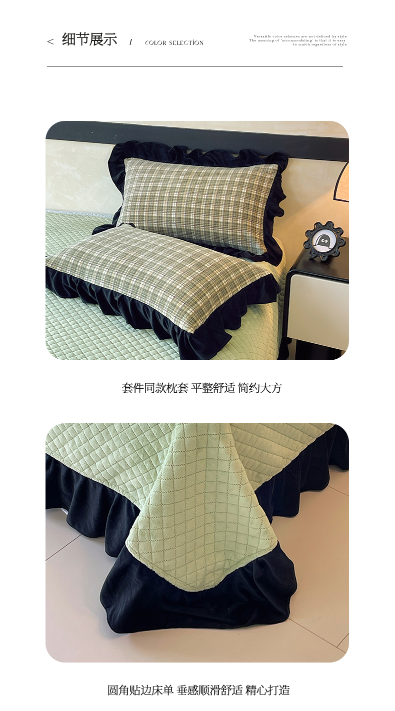 商品名称:慕希家纺 2025新款高克重牛奶绒花边床盖款四件套-格律时尚 格律时尚-绿