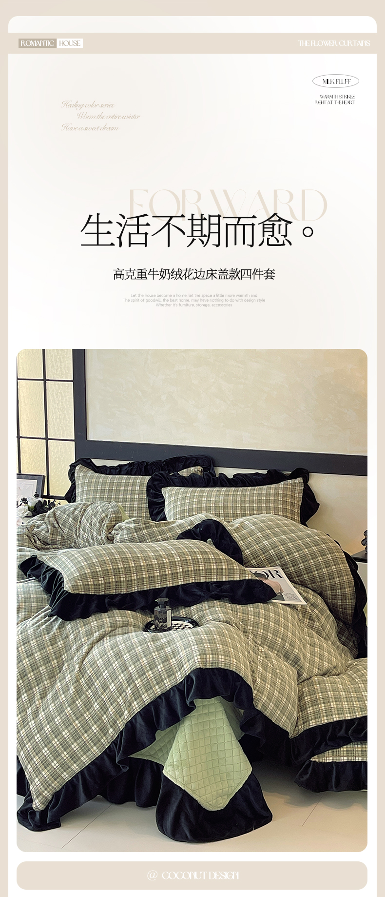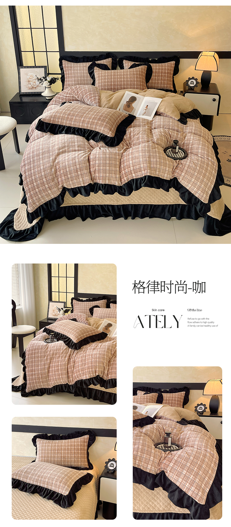 (总)慕希家纺 2025新款高克重牛奶绒花边床盖款四件套-格律时尚,格律时尚-红,格律时尚-灰,格律时尚-咖,格律时尚-蓝,格律时尚-绿