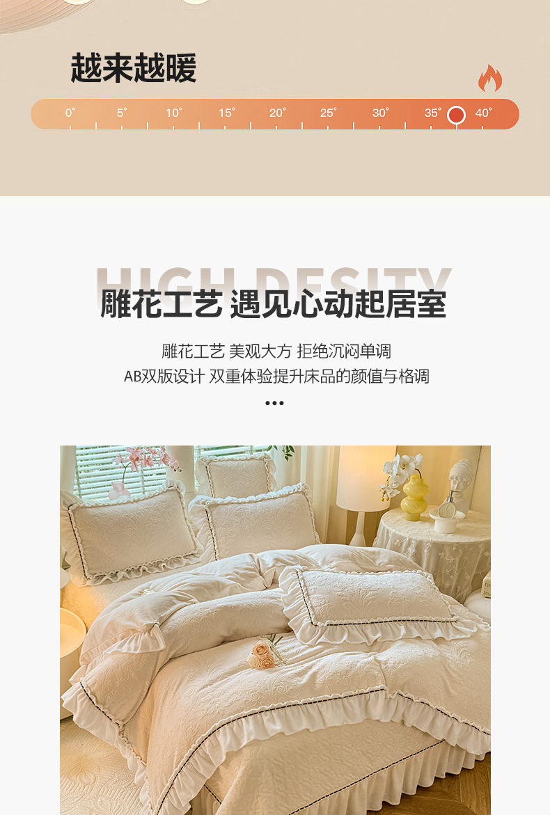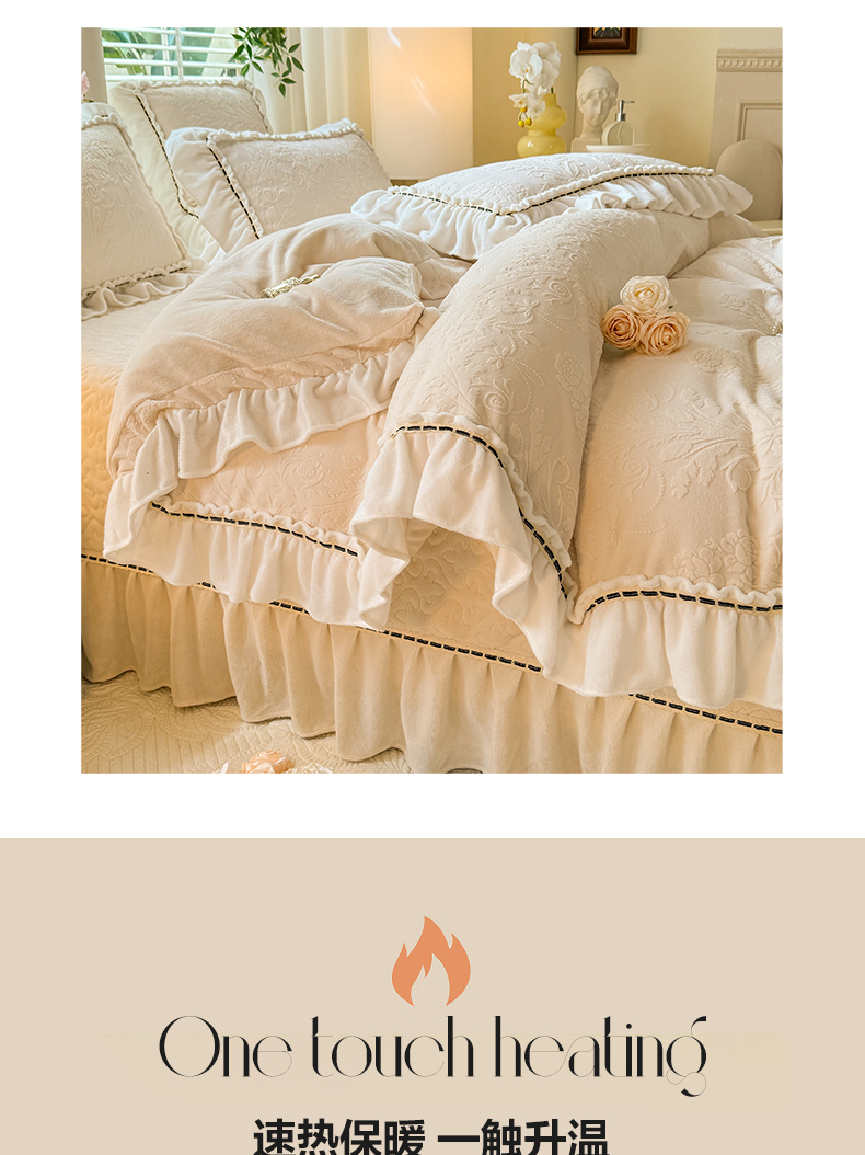商品名称:(总)花香四季家纺 2025新款A类雕花绒夹棉床盖款四件套-浪漫花语