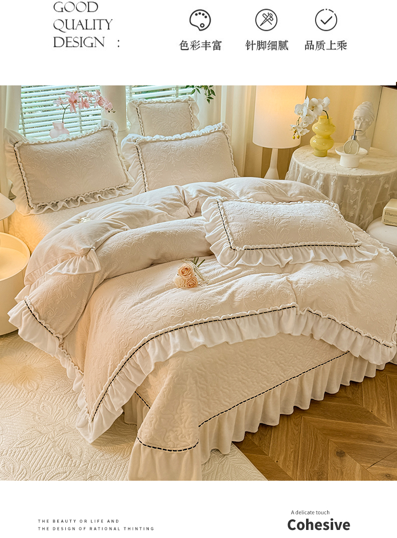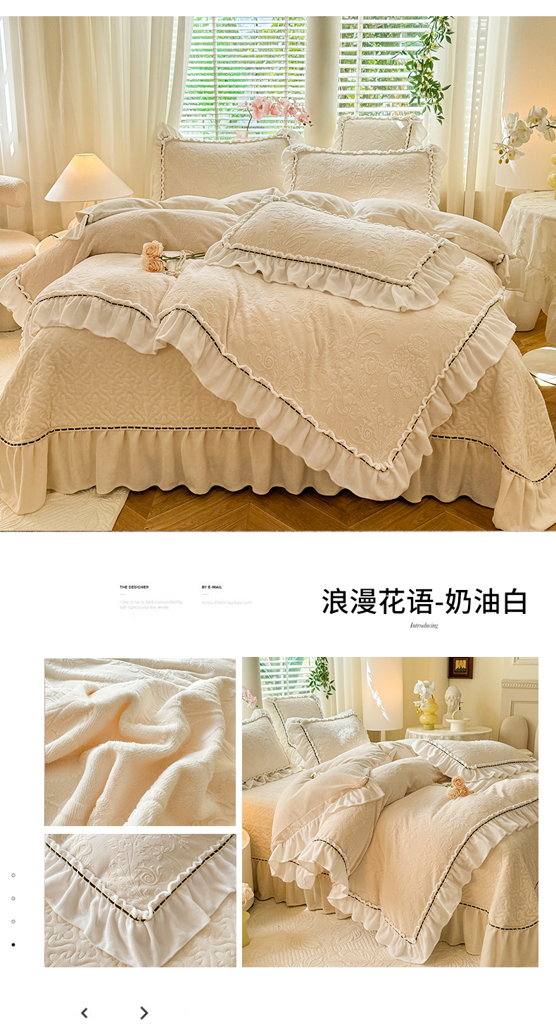 (总)花香四季家纺 2025新款牛奶绒夹棉床裙款四件套-柏林小姐,柏林小姐-白,柏林小姐-粉