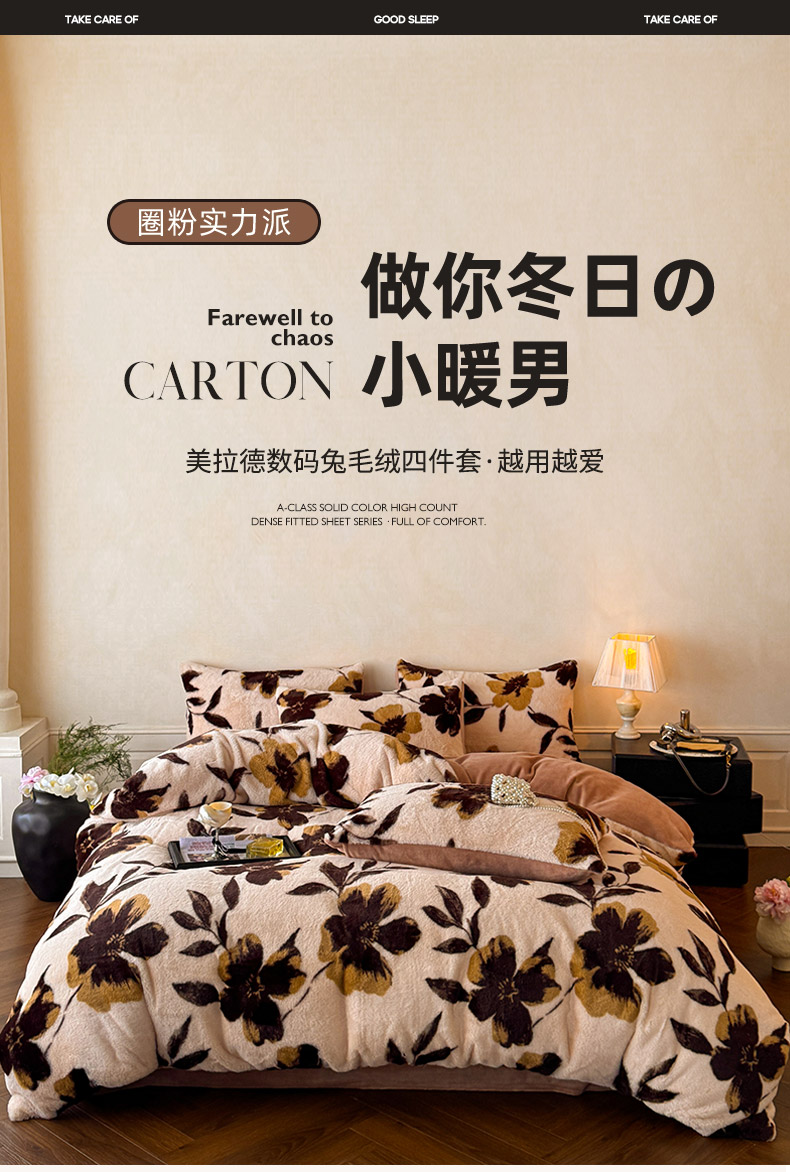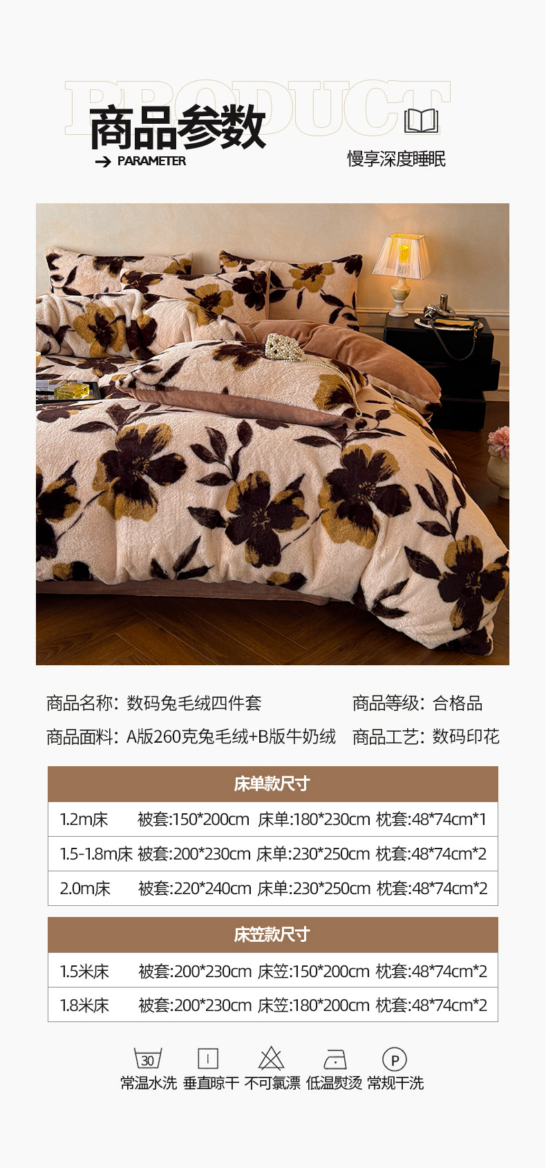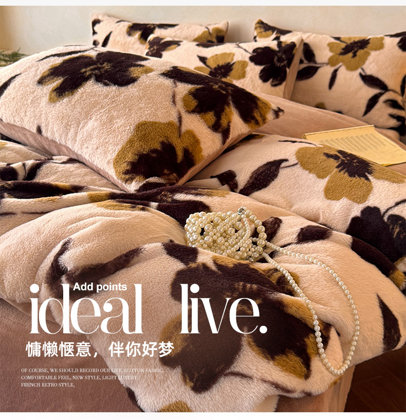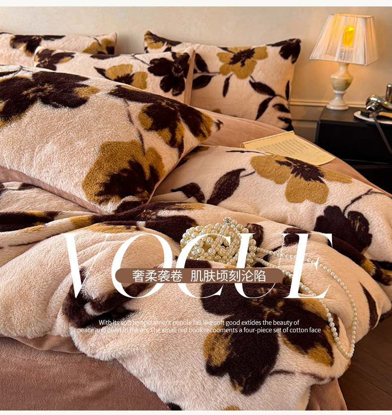 商品名称:吾诺家居2025新款美拉德260克兔毛四件套数码四件套牛奶绒四件套 花间汐月