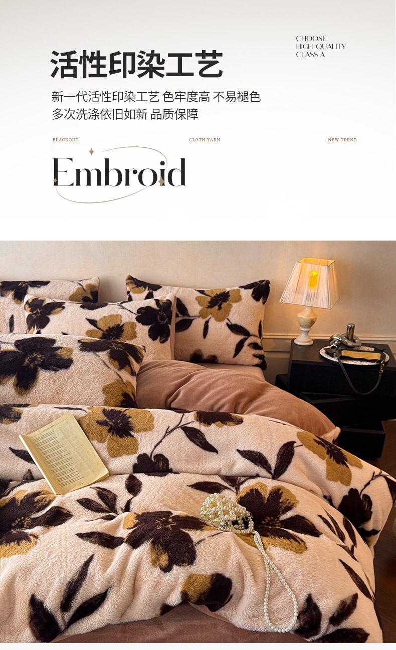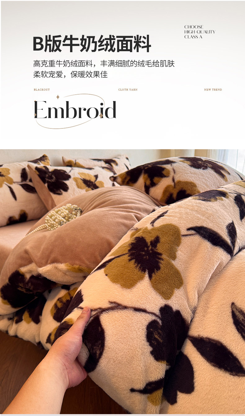 (总)吾诺 兔毛边230克雕花牛奶绒四件套 - 秋意系列,朝花,紫叶,花海,轻羽,飞花,秋意,冬梅,华美,春野