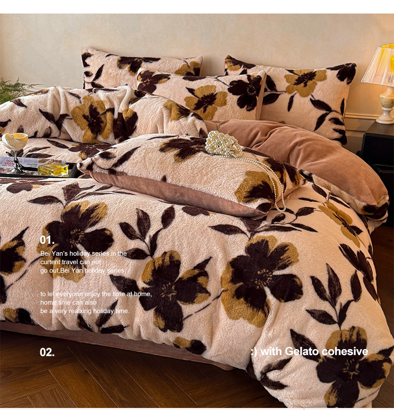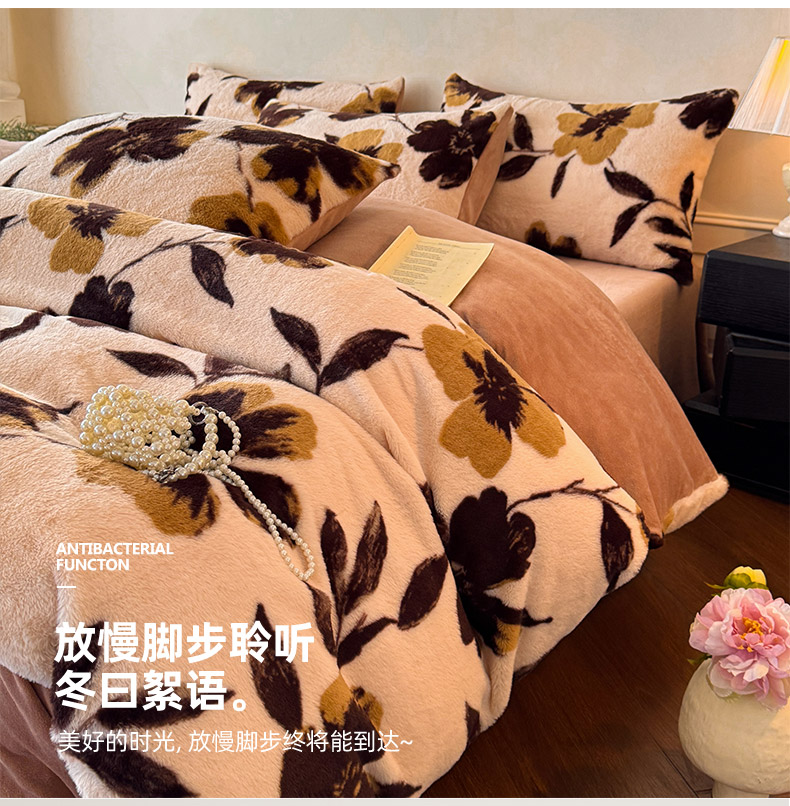 吾诺家居2025新款美拉德260克兔毛四件套数码四件套牛奶绒四件套 花间汐月
