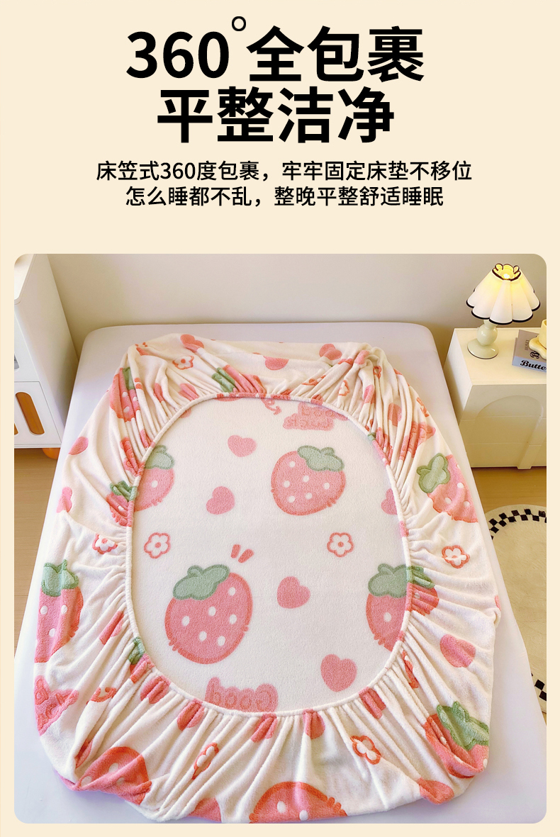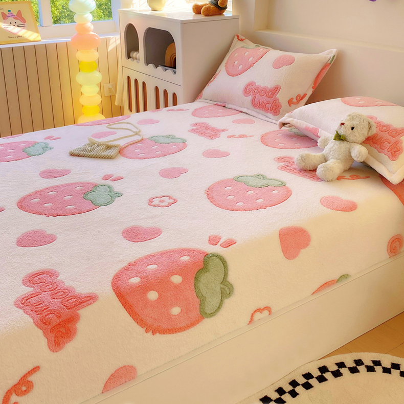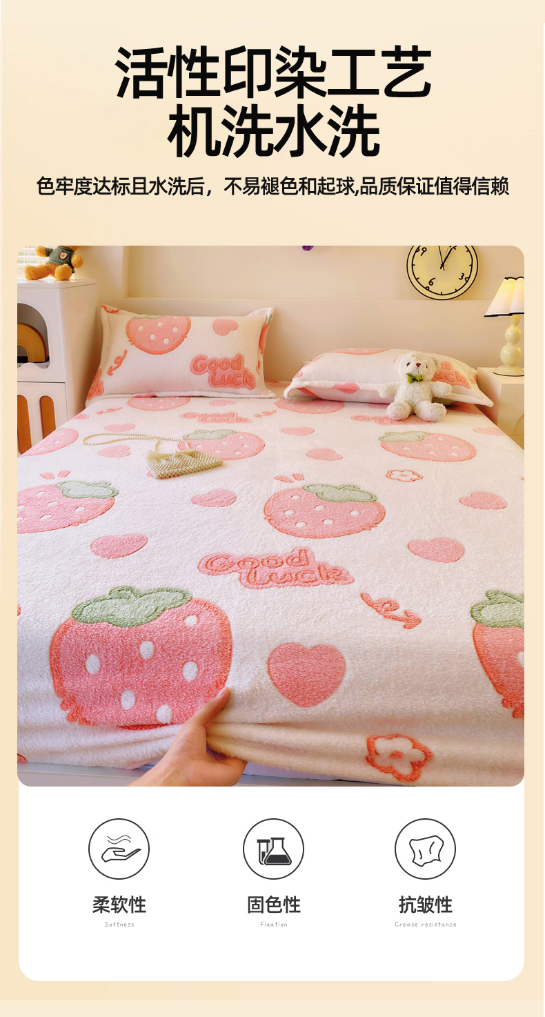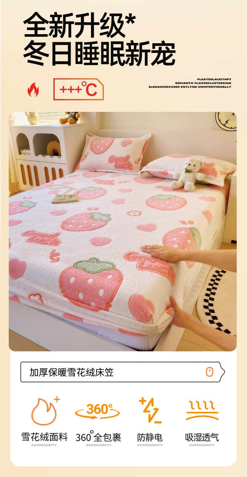 • 91家纺网 家纺一手货源 找家纺 梦尚舒 2025新款180克雪花绒床笠单品床笠床笠单件 啵啵草莓
