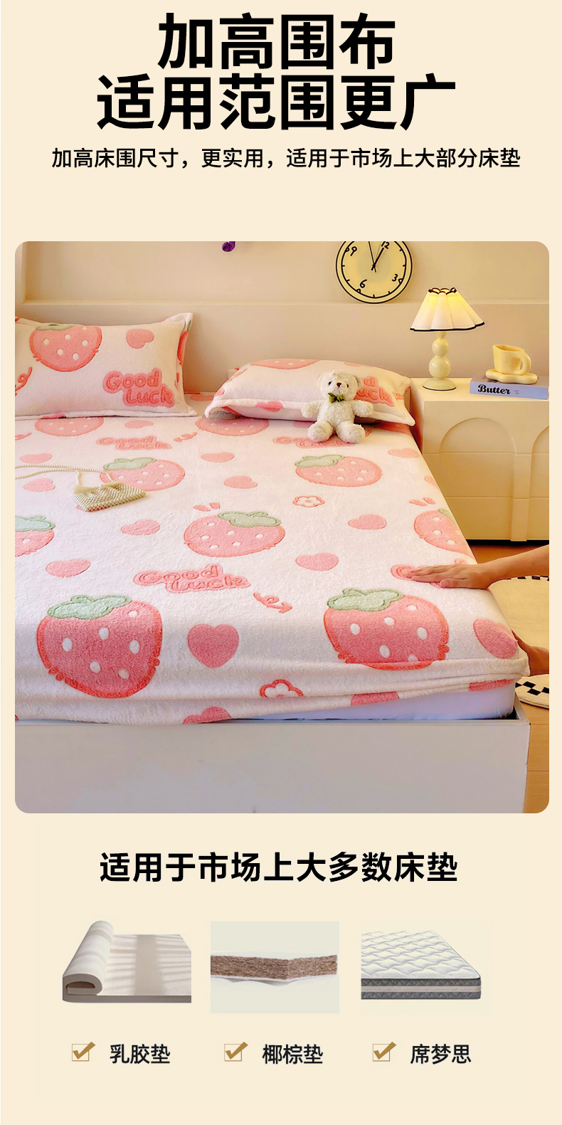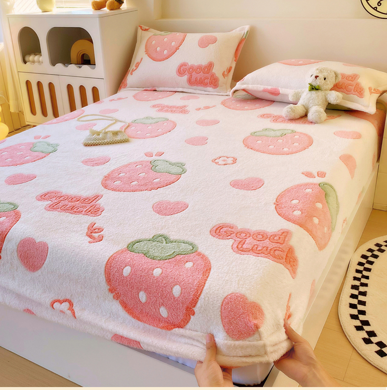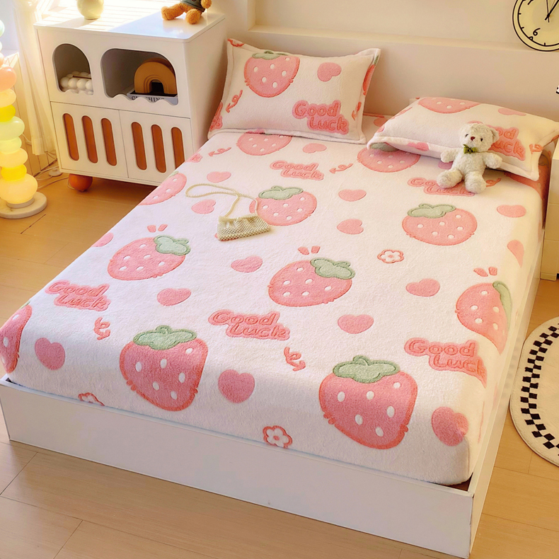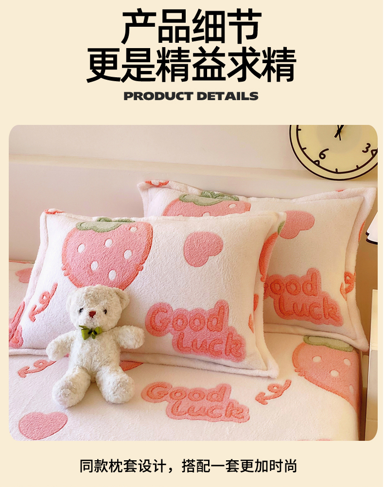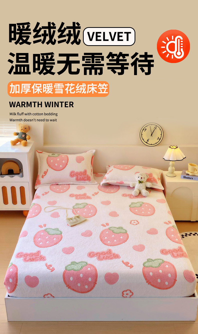 • 91家纺网 家纺一手货源 找家纺 梦尚舒 2025新款180克雪花绒床笠单品床笠床笠单件 啵啵草莓