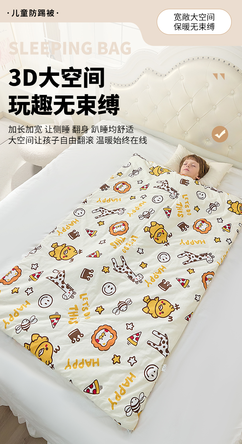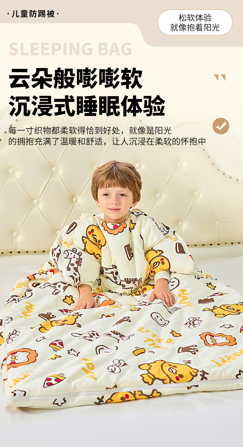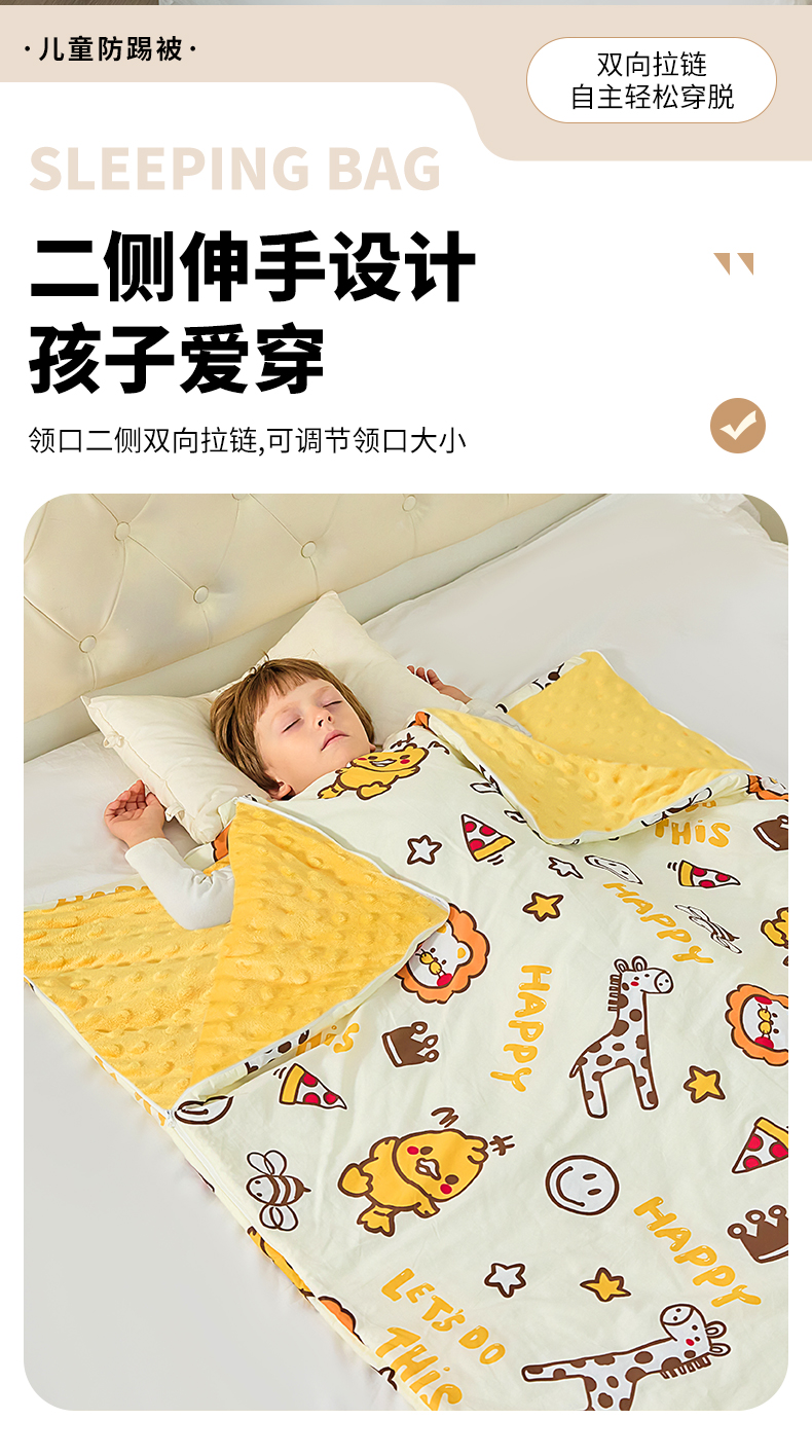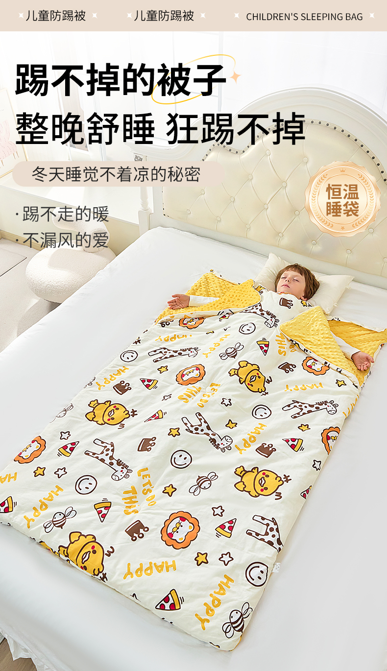 当前位置: 91家纺网 > 商品网购 > 婴童用品 > 婴童睡袋/防踢被 > 嗨皮宝贝 2025新款儿童防踢被秋冬款季加厚睡袋中大童小孩防蹬被子神器四季通用 恐龙世界黄-豆豆款-薄款夹棉120g