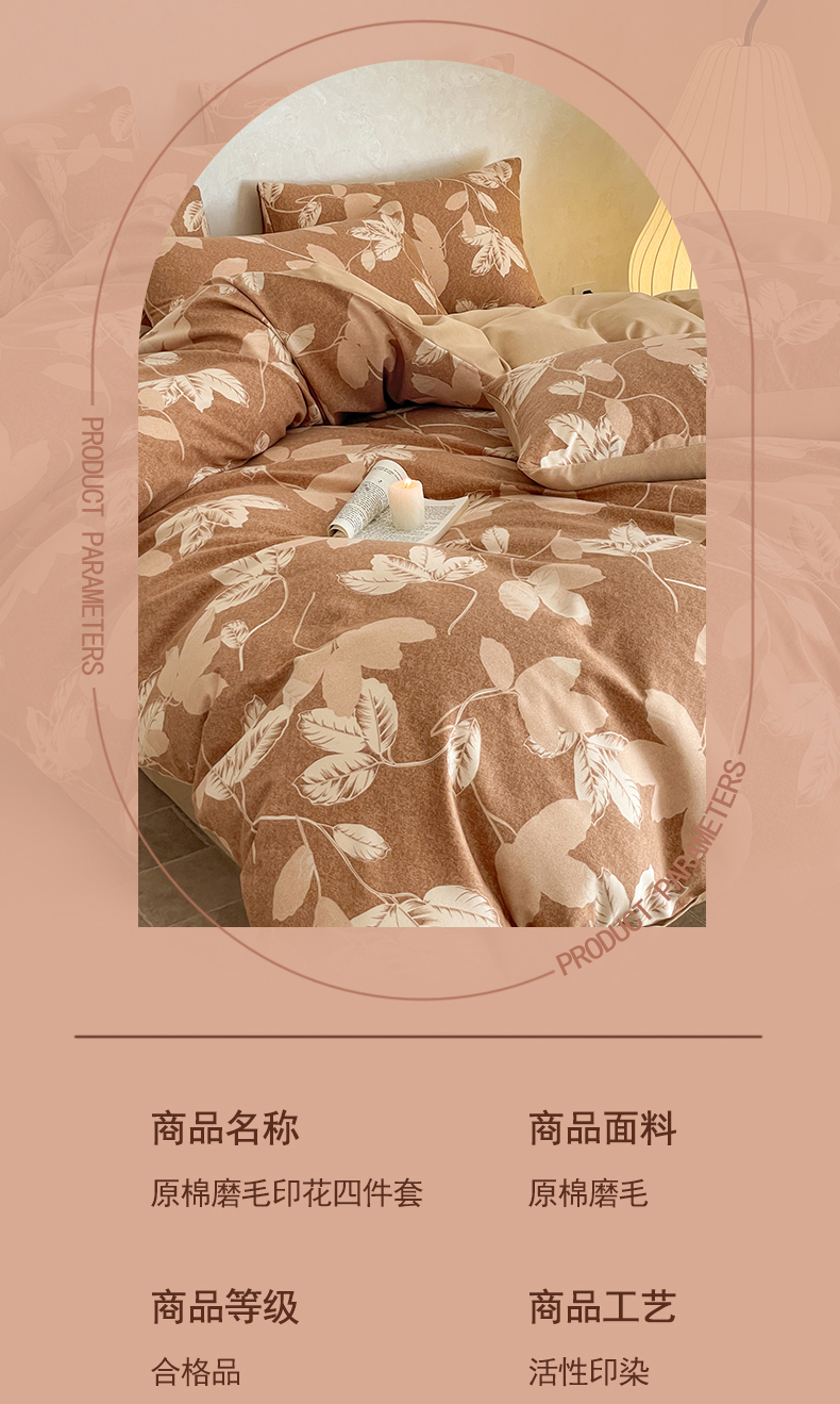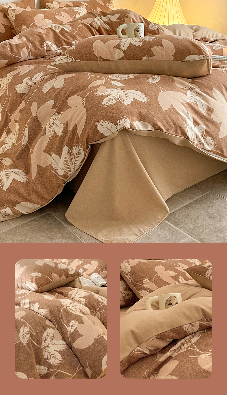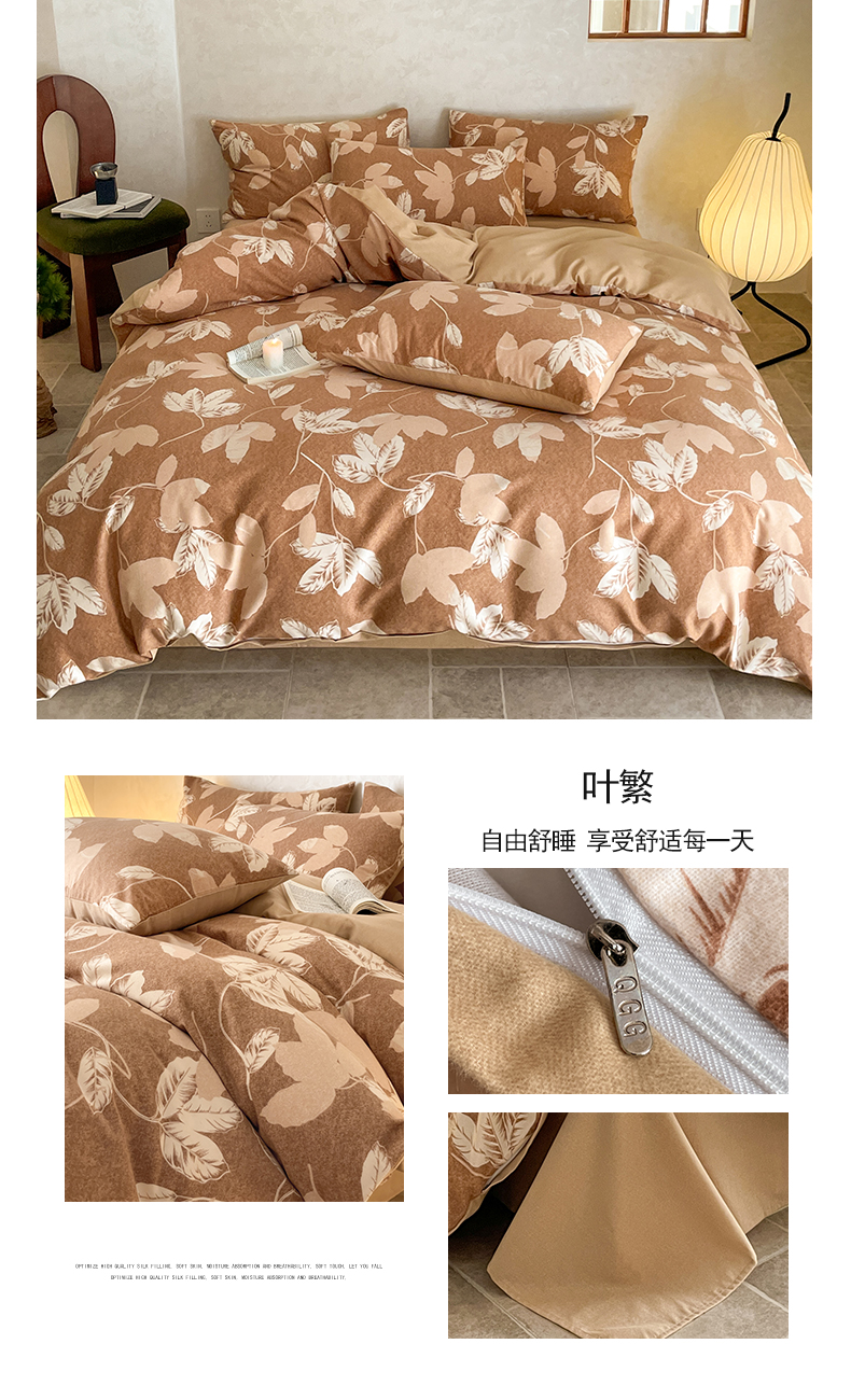 当前位置: 91家纺网 > 商品网购 > 床品套件 > 四件套 > 磨毛活性四件套 > 琪格格纺织 2025新款磨毛印花四件套 叶繁