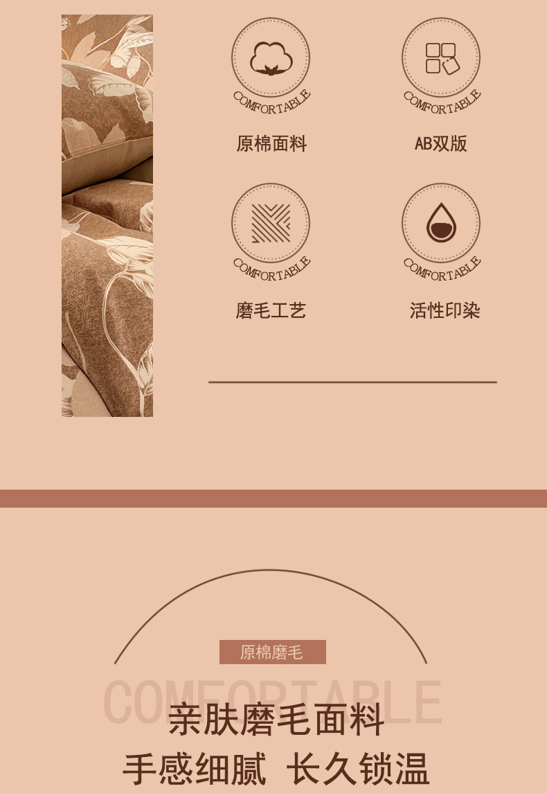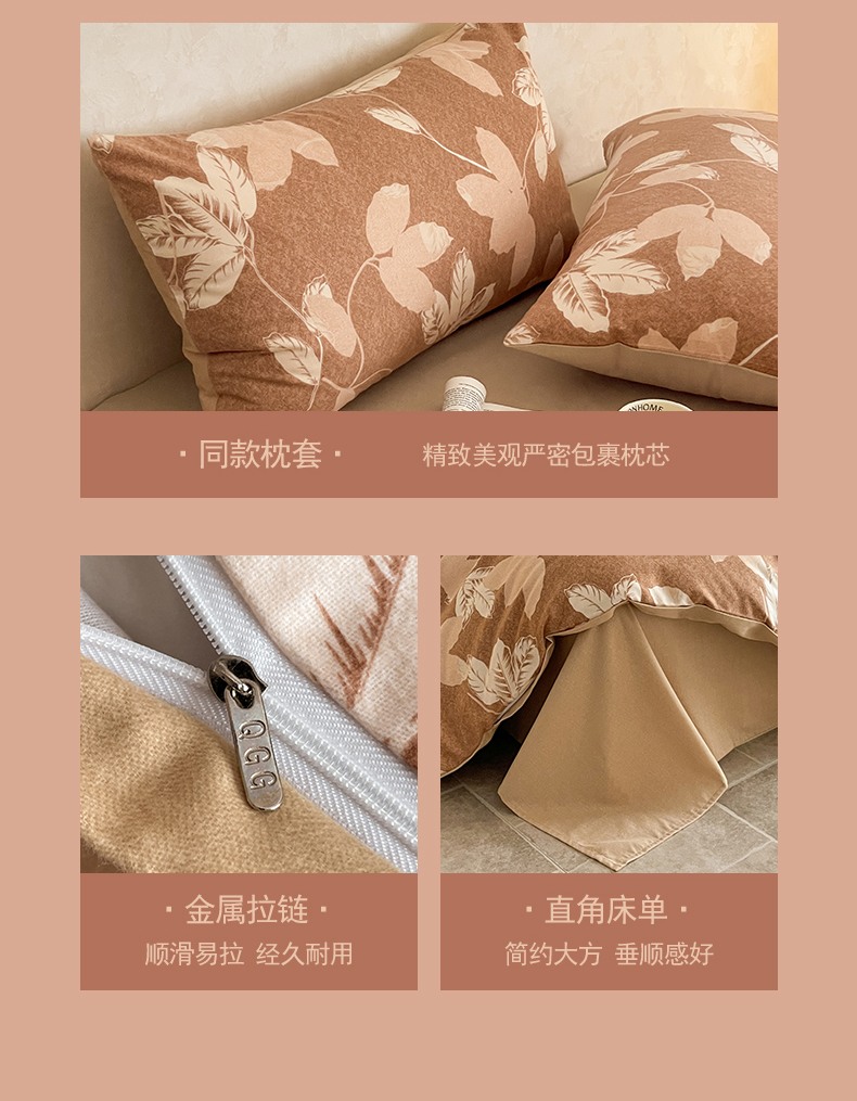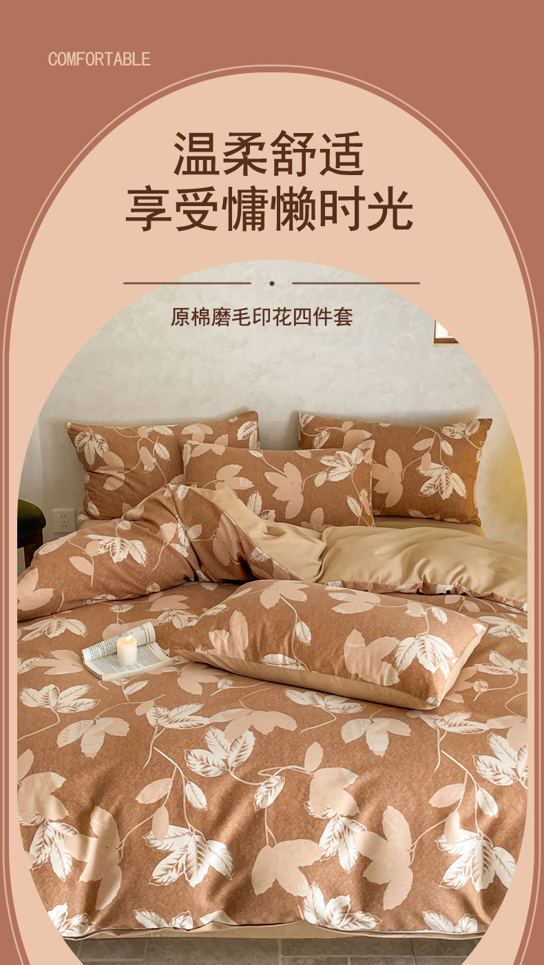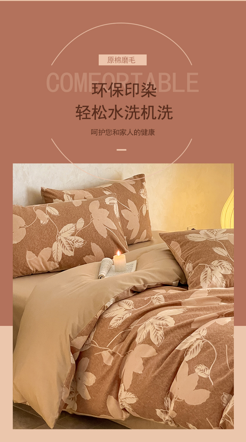 当前位置: 91家纺网 > 商品网购 > 床品套件 > 四件套 > 磨毛活性四件套 > 琪格格纺织 2025新款磨毛印花四件套 叶繁