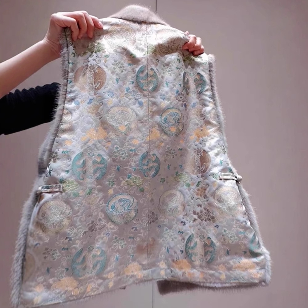 洛兰沙家居馆【只代发】【只代发】 2025新款复古织锦缎细纱棉麻拼接马甲背心刺绣中式盘扣上衣 28