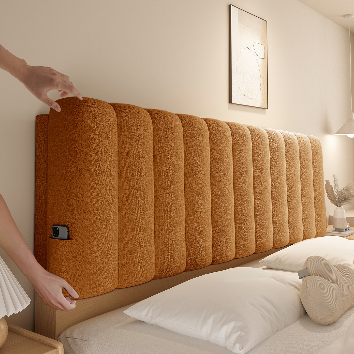 沐沐家纺 2026新款泰迪绒床头罩靠背 元气橙