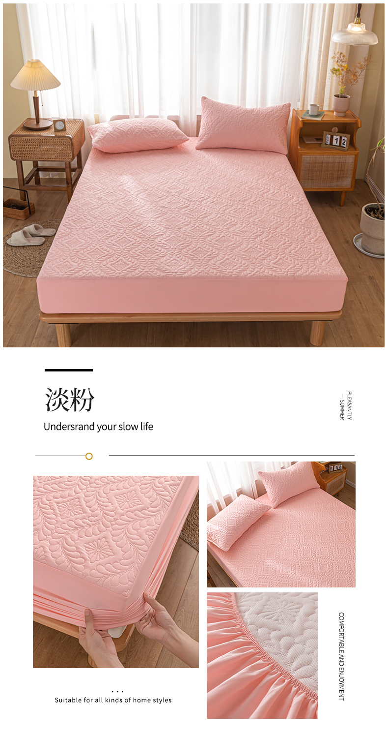 商品名称:梵克保罗 2025新款简约纯色水洗棉防水夹棉枕套 浅粉