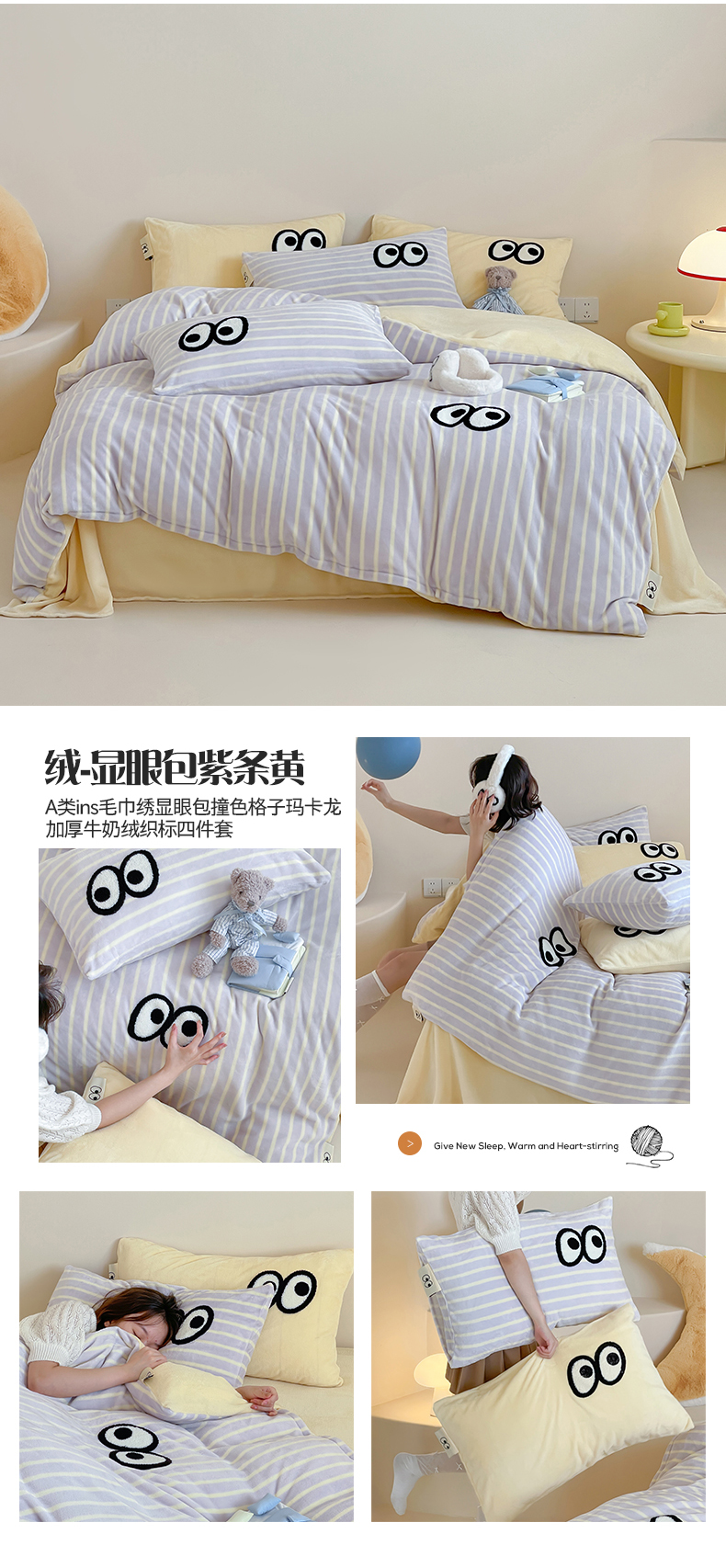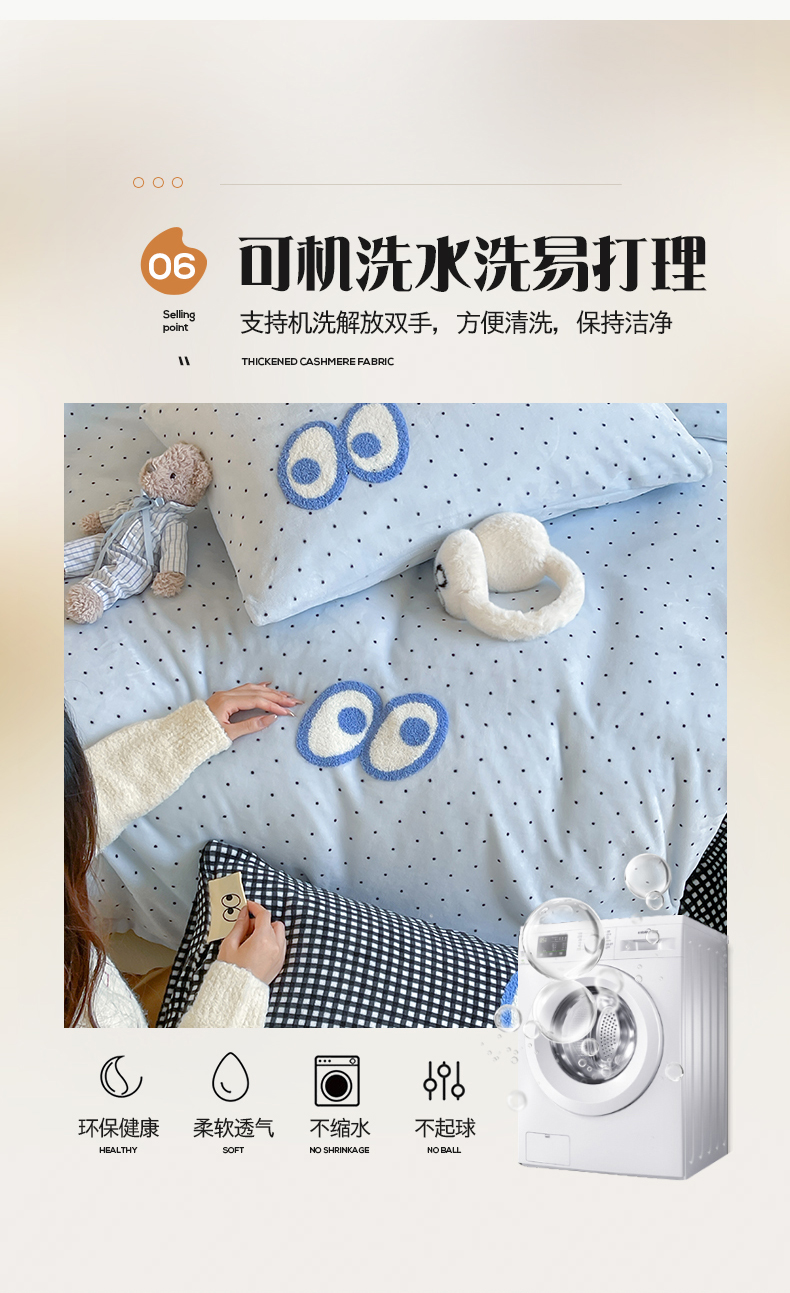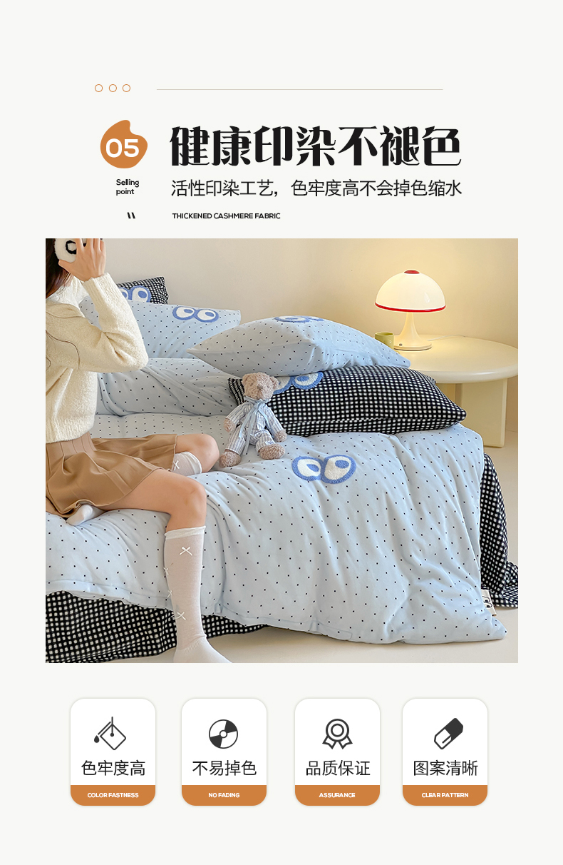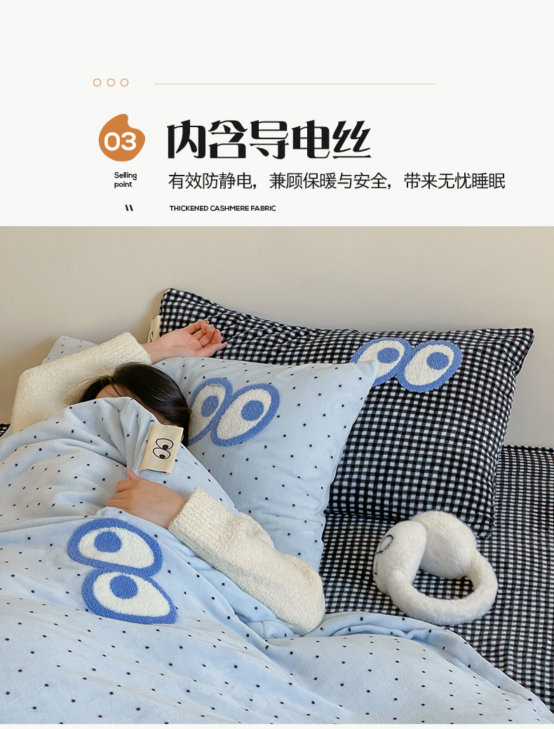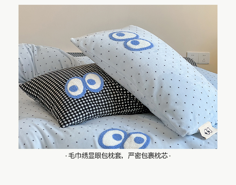 当前位置: 91家纺网 > 商品网购 > 床品套件 > 四件套 > 牛奶绒四件套 > 桃子家居 2025新款A类ins毛巾绣显眼包撞色格子玛卡龙加厚牛奶绒织标四件套时尚模特 绒-显眼包蓝点黑格