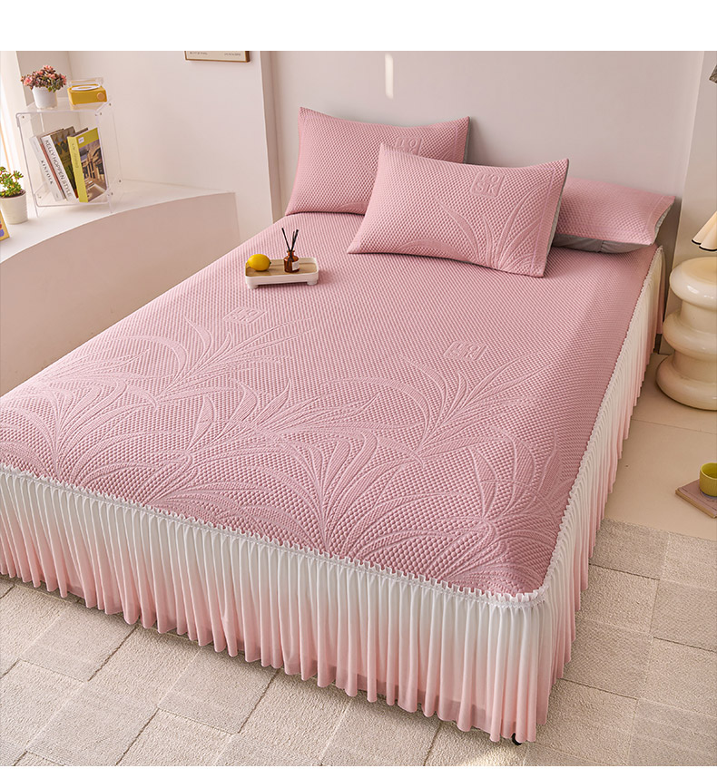 梵克保罗 2025新款3D冰感床裙渐变色凉席-叶叶生歌 叶叶生歌-蓝