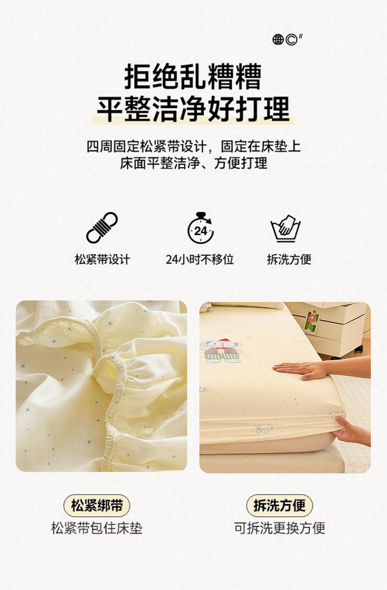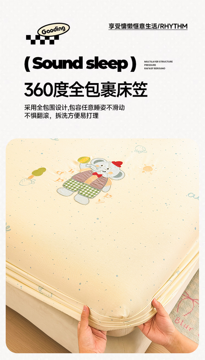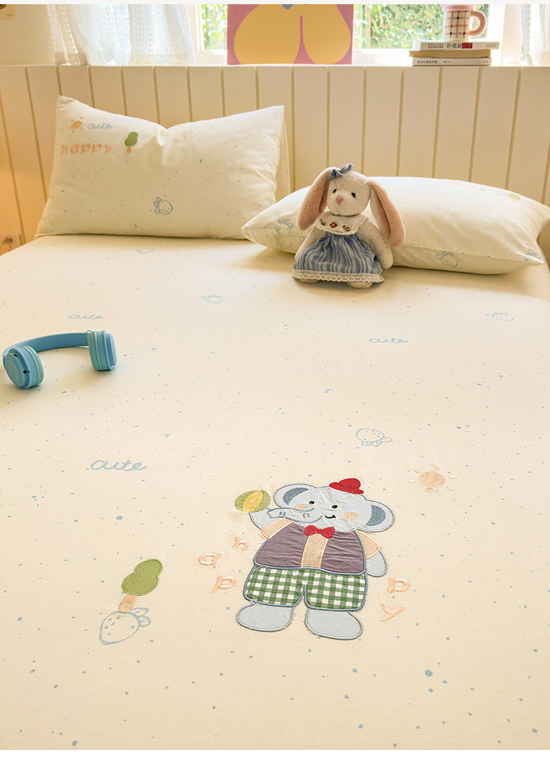 娜娜 2025新款60支全棉贴布绣床笠 快乐小象