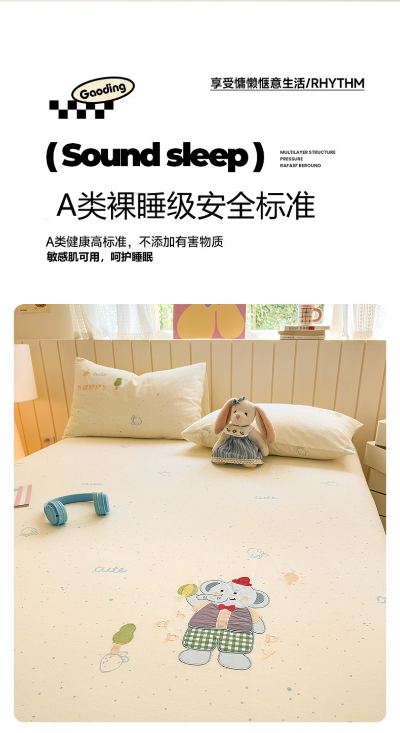 (总)娜娜 2025新款全棉夹棉多功能床盖,爱心绿免(全棉床盖),快乐女孩粉(全棉床盖),小飞象(全棉床盖),樱桃粉兔(全棉床盖),组合