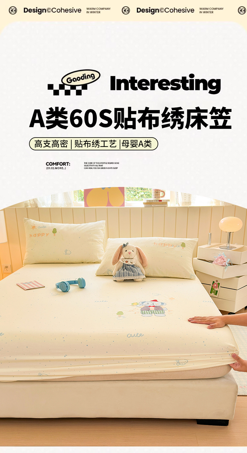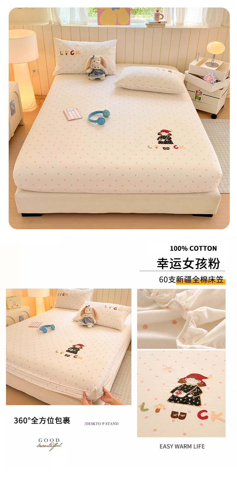 (总)娜娜 2025新款60支全棉贴布绣床笠,爱心绿兔,快乐小象,幸运女孩粉,幸运女孩黄,樱桃粉兔,组合图仅供展示