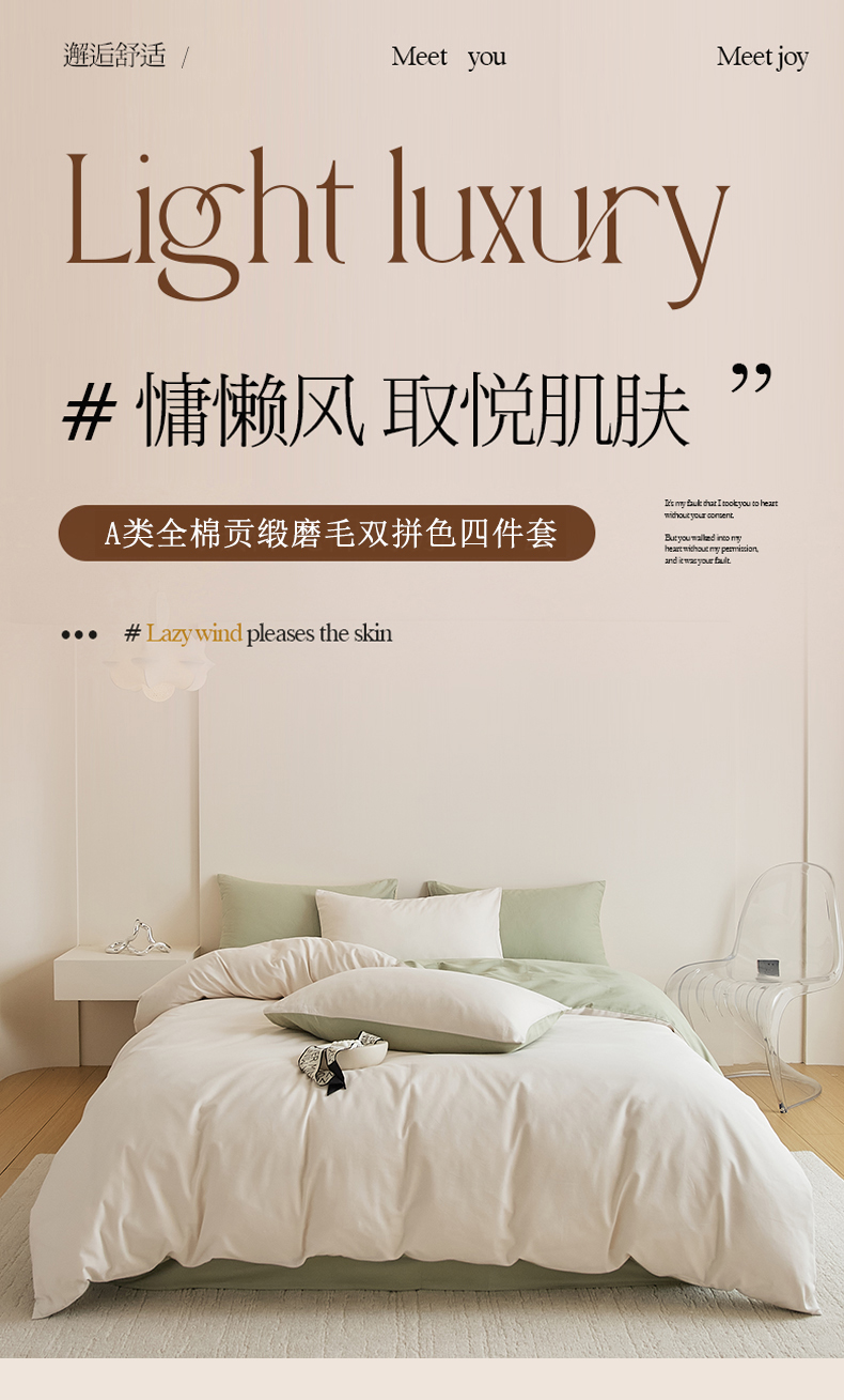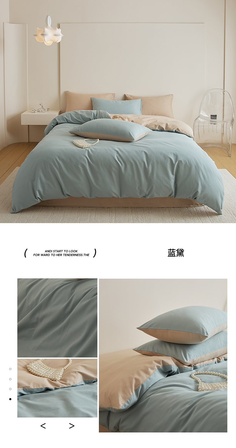 当前位置: 91家纺网 > 商品网购 > 床品套件 > 四件套 > 全棉普通四件套 > 眷恋家纺 2025新款A类全棉贡缎磨毛双拼色四件套 玉林