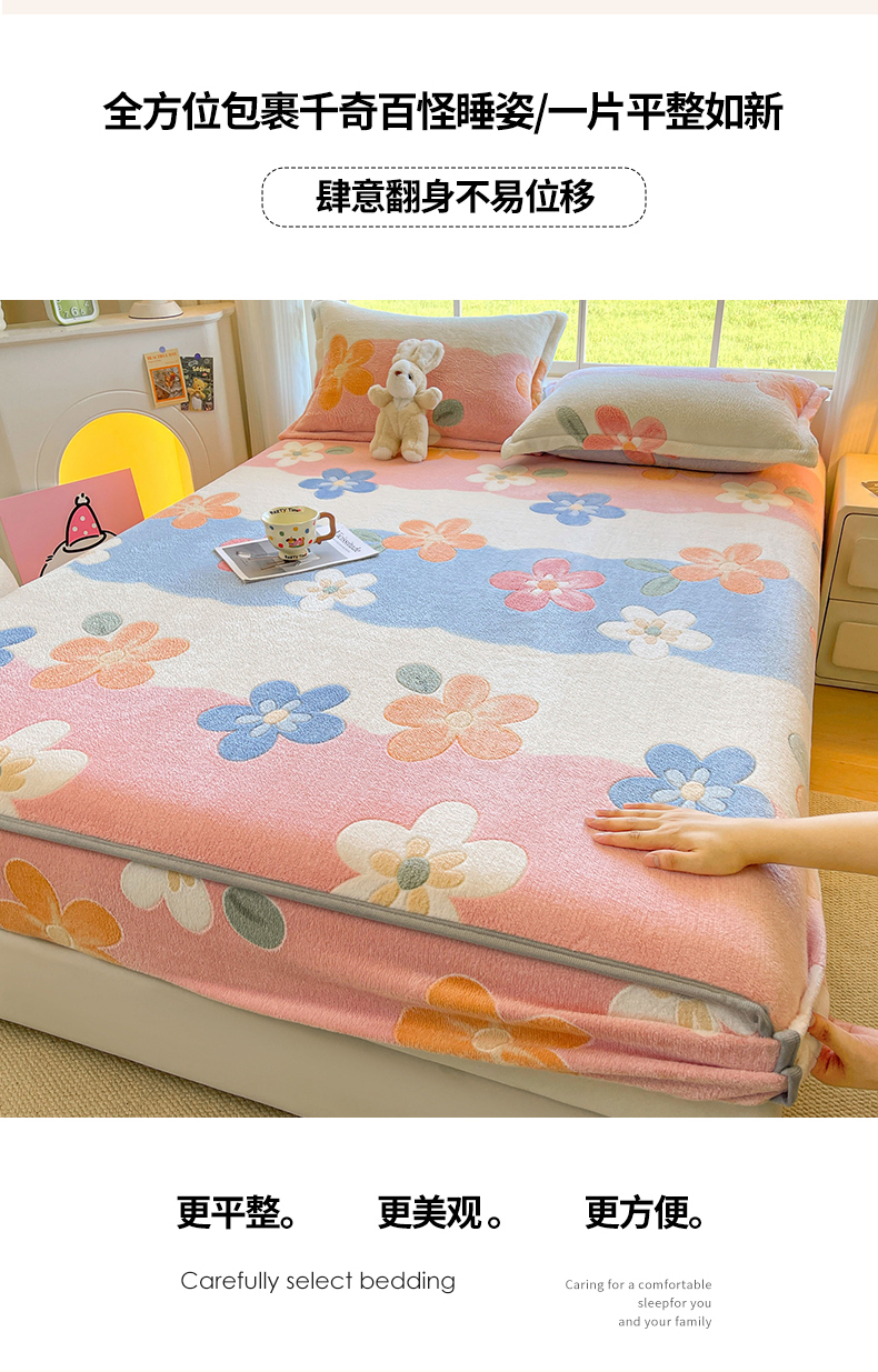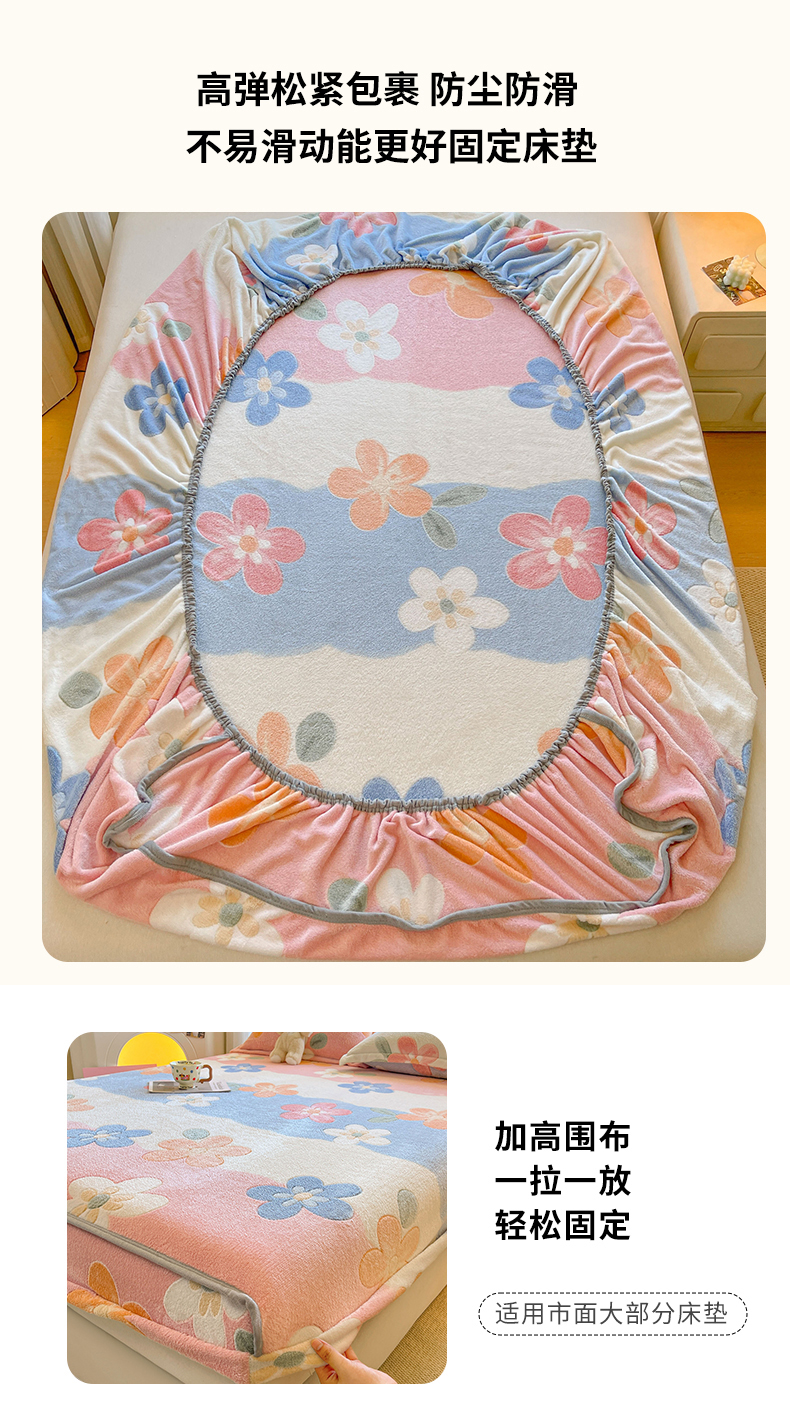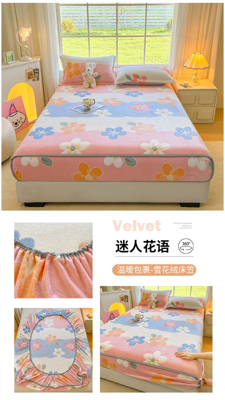 牵梦萦家纺 2025新款雪花绒立体包边床笠 迷人花语