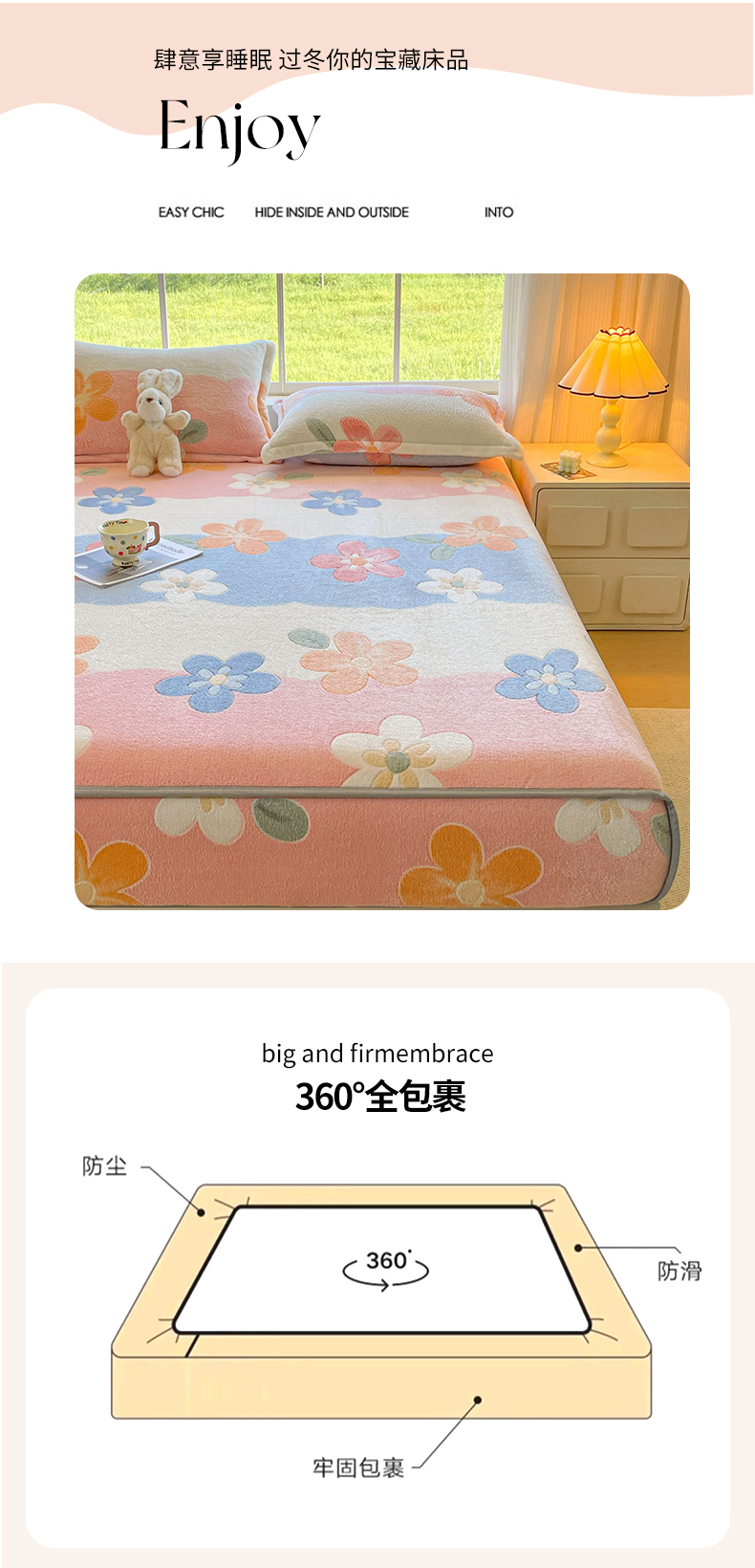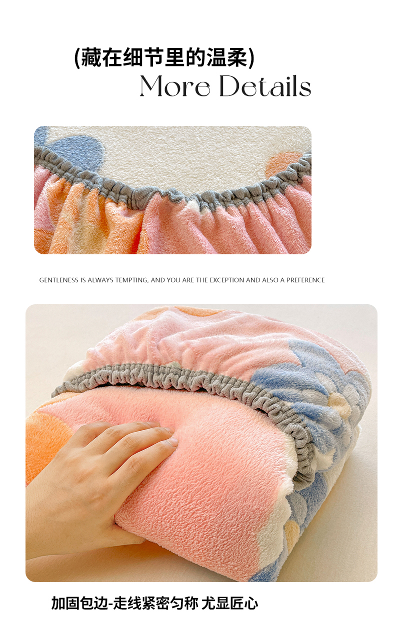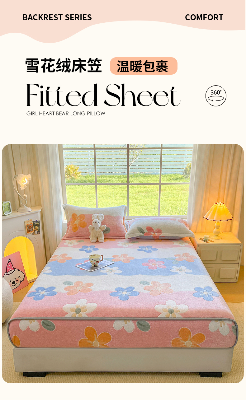 牵梦萦家纺 2025新款雪花绒立体包边床笠 迷人花语
