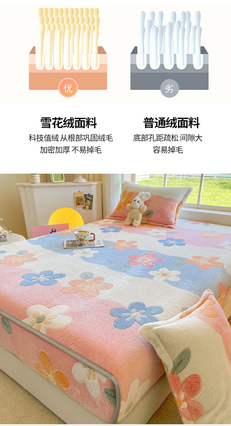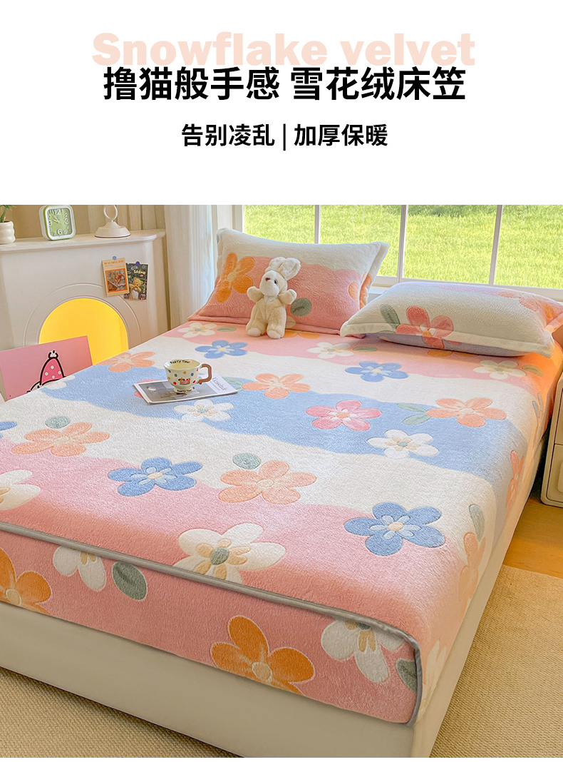 商品名称:牵梦萦家纺 2025新款雪花绒立体包边床笠 迷人花语