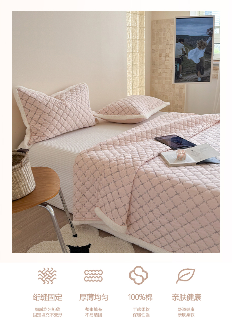 (总)漫调家纺 2025新款全棉双层纱与绒床盖三件套,黛紫缀花,粉雾枝蔓,玫瑰故事,青芜点绯,轻烟凝灰