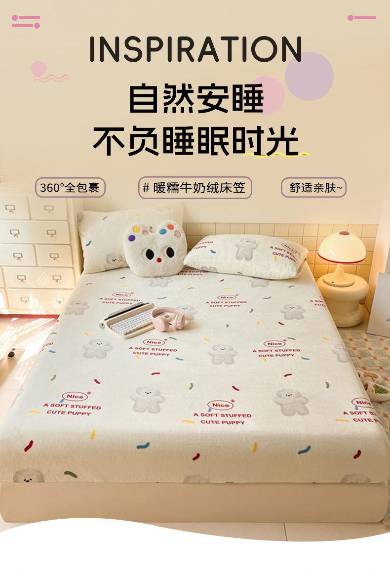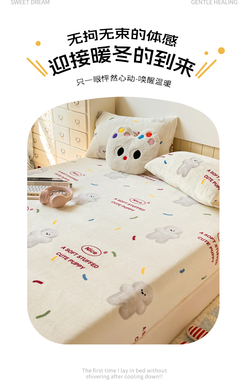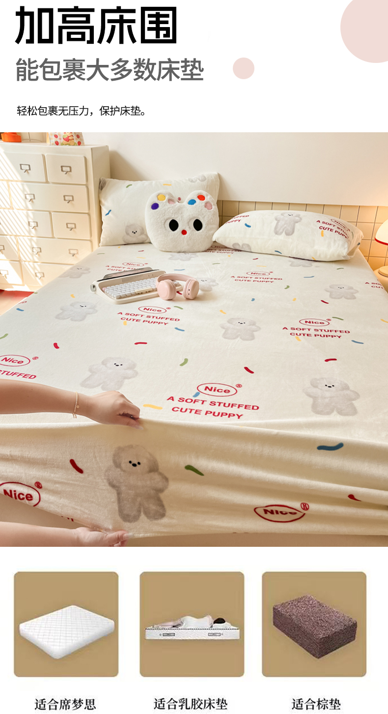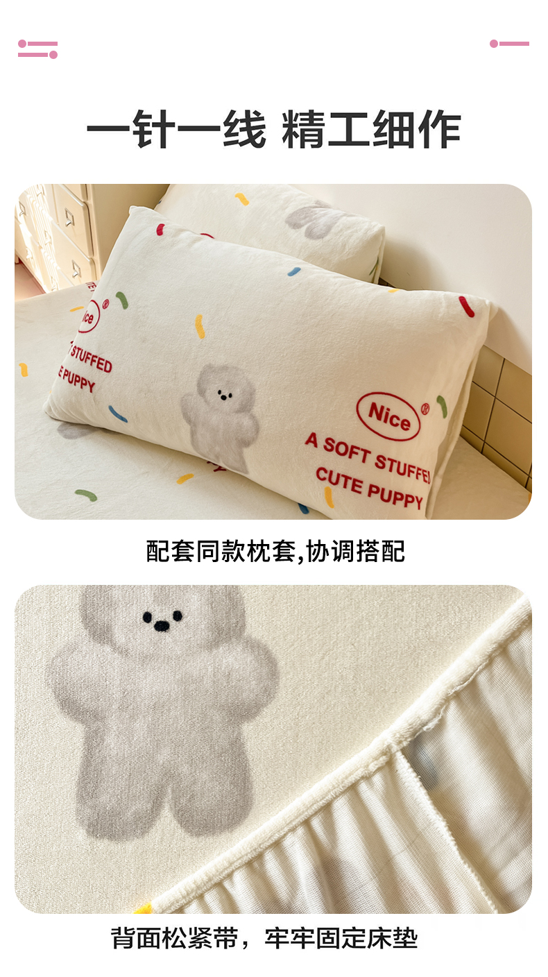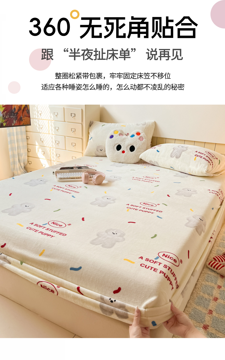 当前位置: 91家纺网 > 商品网购 > 床上用品 > 床笠 > 爱彼家纺 2025新款高克重牛奶绒卡通床笠单床笠单件 白熊甜梦