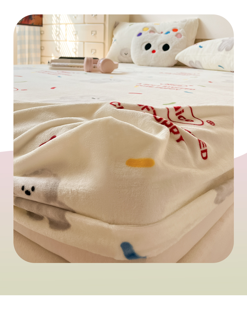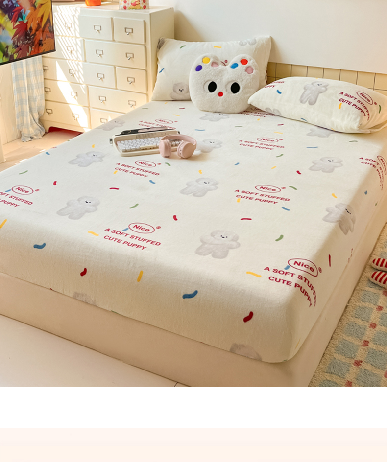 爱彼家纺 2025新款高克重牛奶绒卡通床笠单床笠单件 白熊甜梦