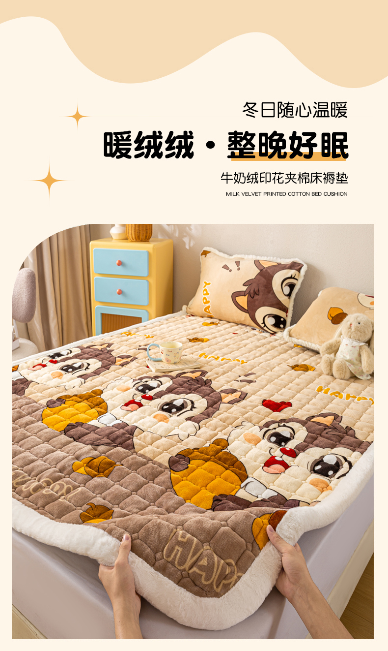 (总)梦初语 2025新款牛奶绒印花夹棉加厚款床护垫褥子大床场景-直播爆款(夹棉200克),唯美小熊,繁星,格调,快乐panda,奶油爱心,顽皮鼠,汪汪星球,熊猫乐园
