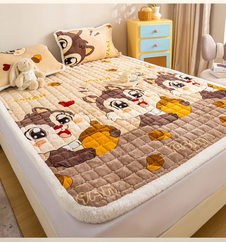 床垫/床褥 > 梦初语 2025新款冬季珊瑚绒牛奶绒加厚床护垫褥子软垫学生宿舍-直播爆款(200克夹棉加厚款) 汪汪星球