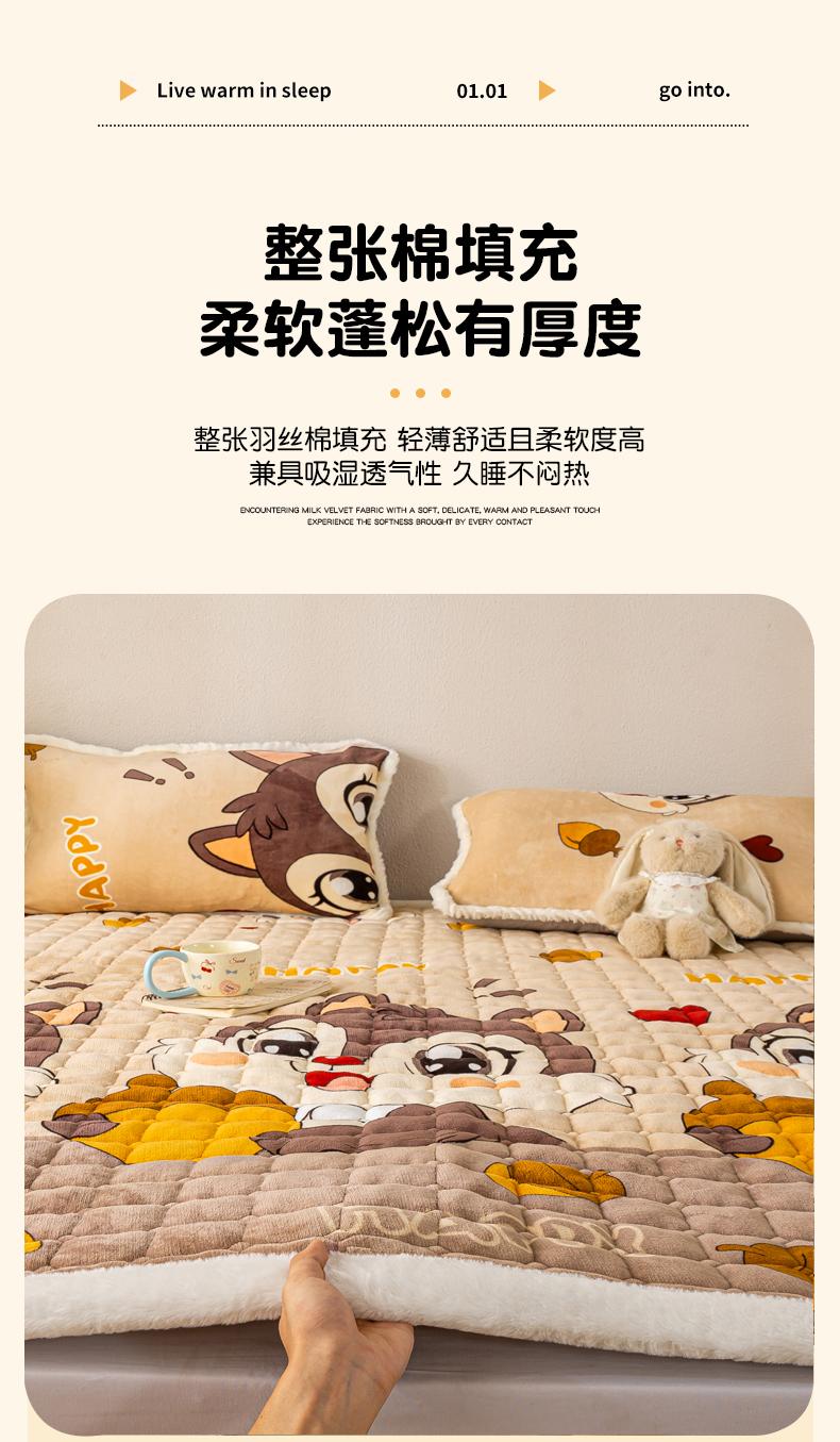 (总)梦初语 2025新款牛奶绒印花夹棉加厚款床护垫褥子学生宿舍-直播爆款(面料180克-夹棉200克-底布80克防滑滴塑布),顽皮鼠,繁星,快乐Panda,奶油爱心,汪汪星球,唯美小熊,熊猫乐园,优雅格调