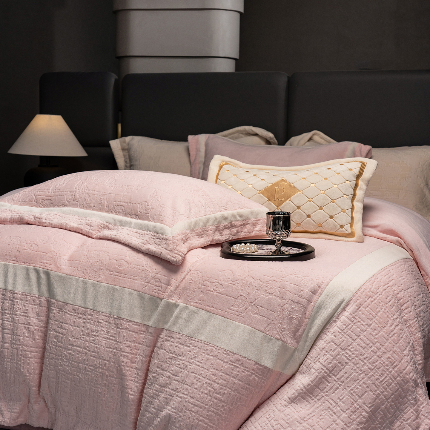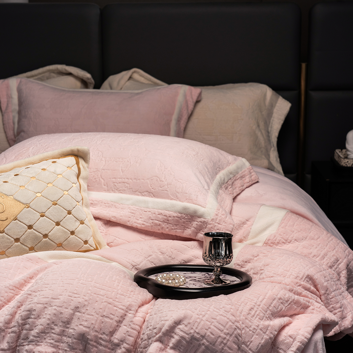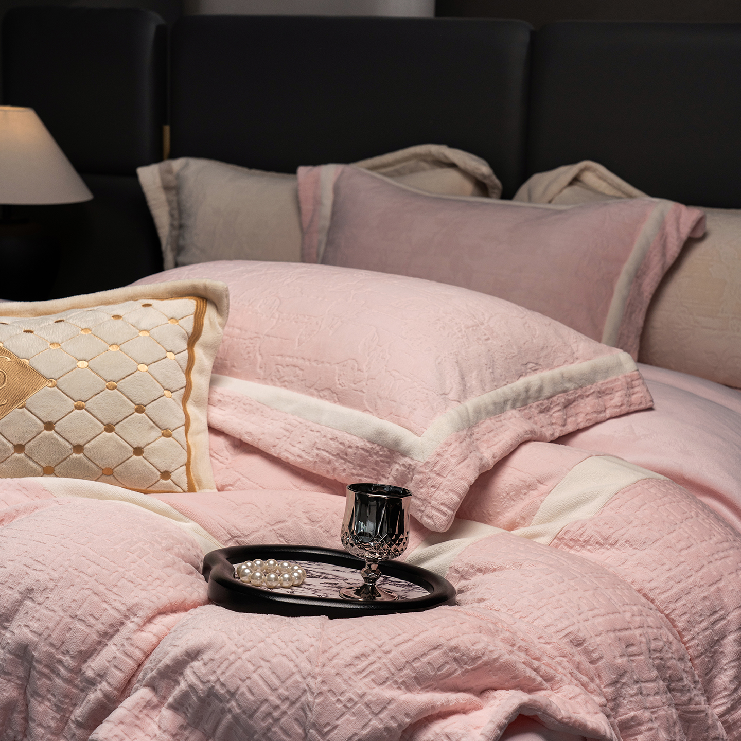 商品名称:(总)蓝梦 2025新款全消光雕花牛奶绒四件套-夕雾玫瑰
