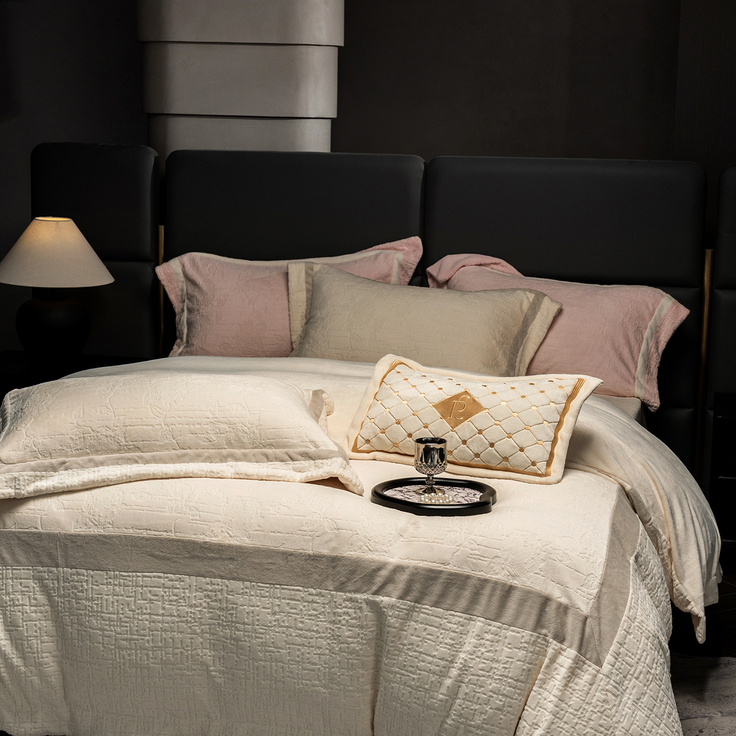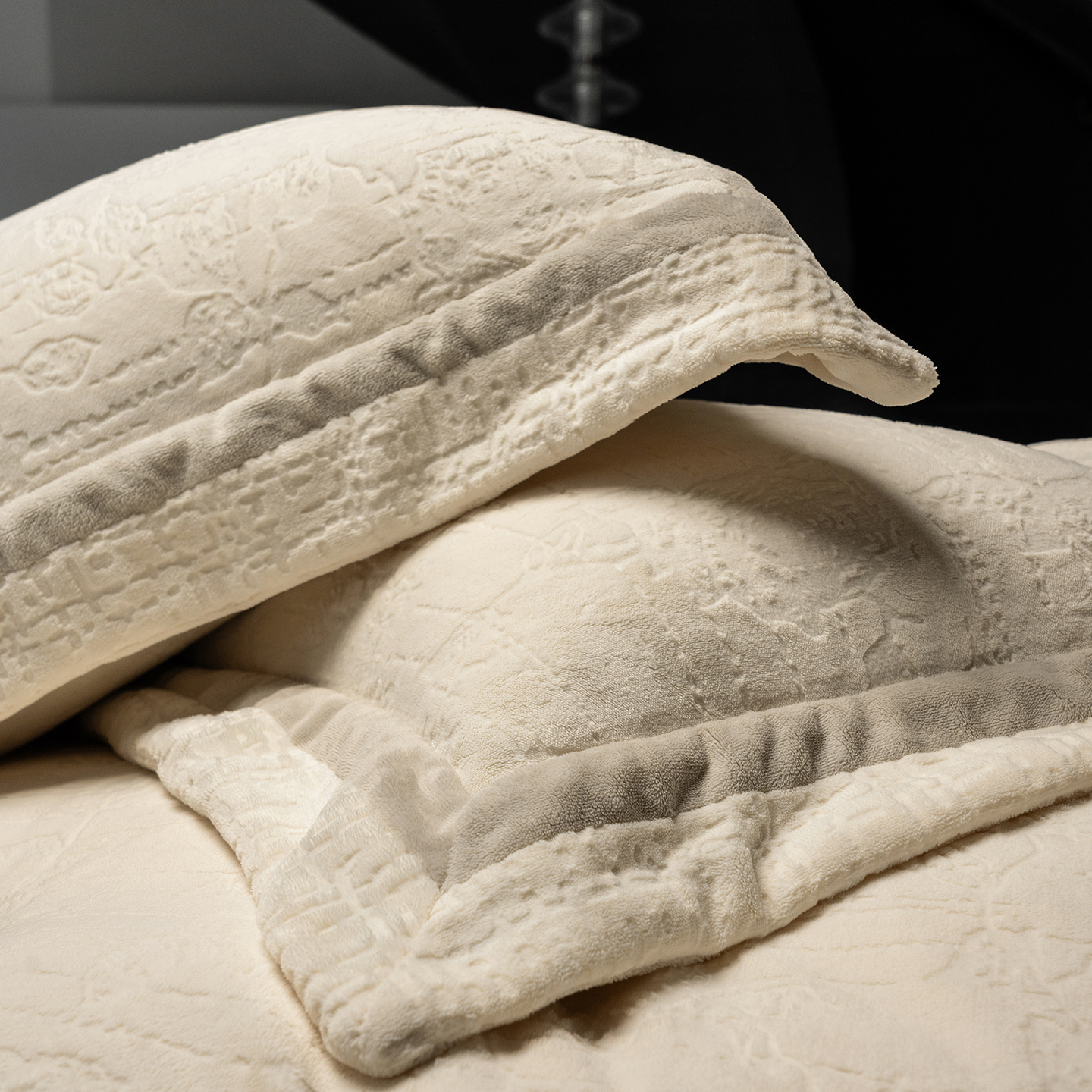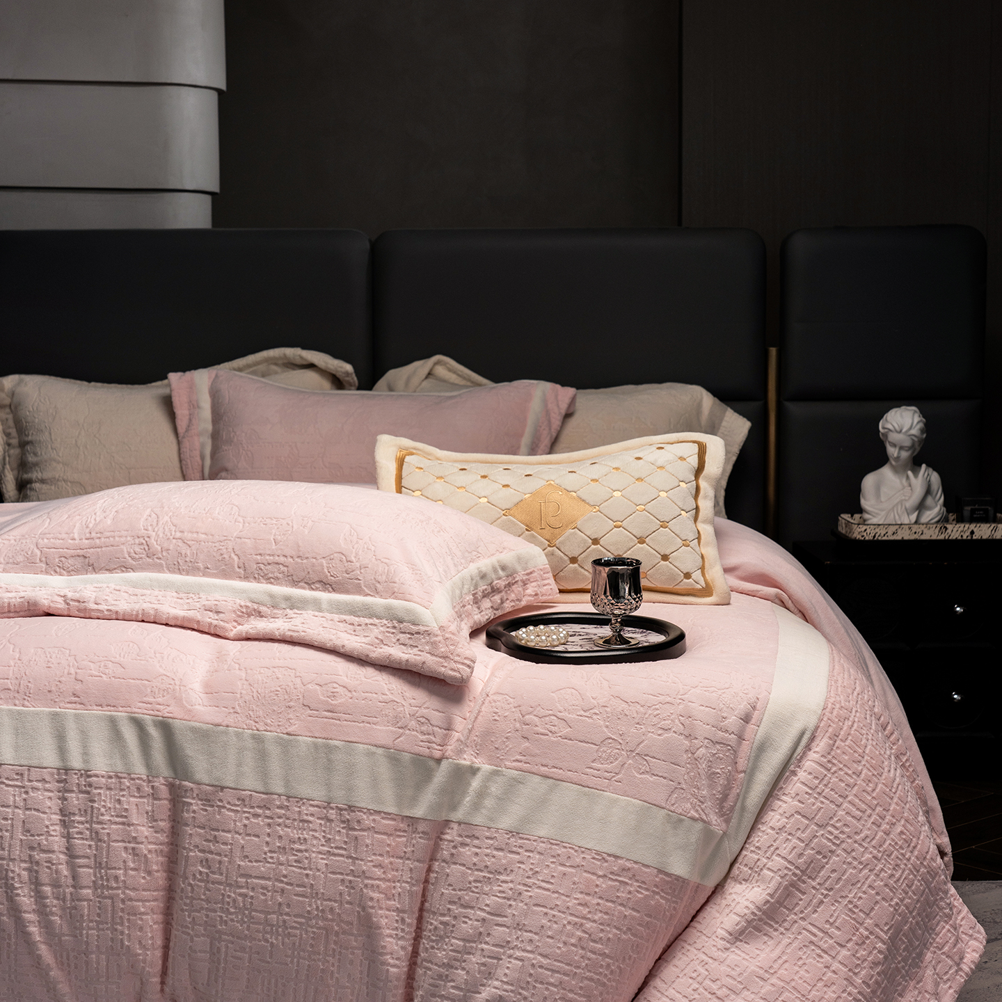 商品名称:(总)蓝梦 2025新款全消光雕花牛奶绒四件套-夕雾玫瑰