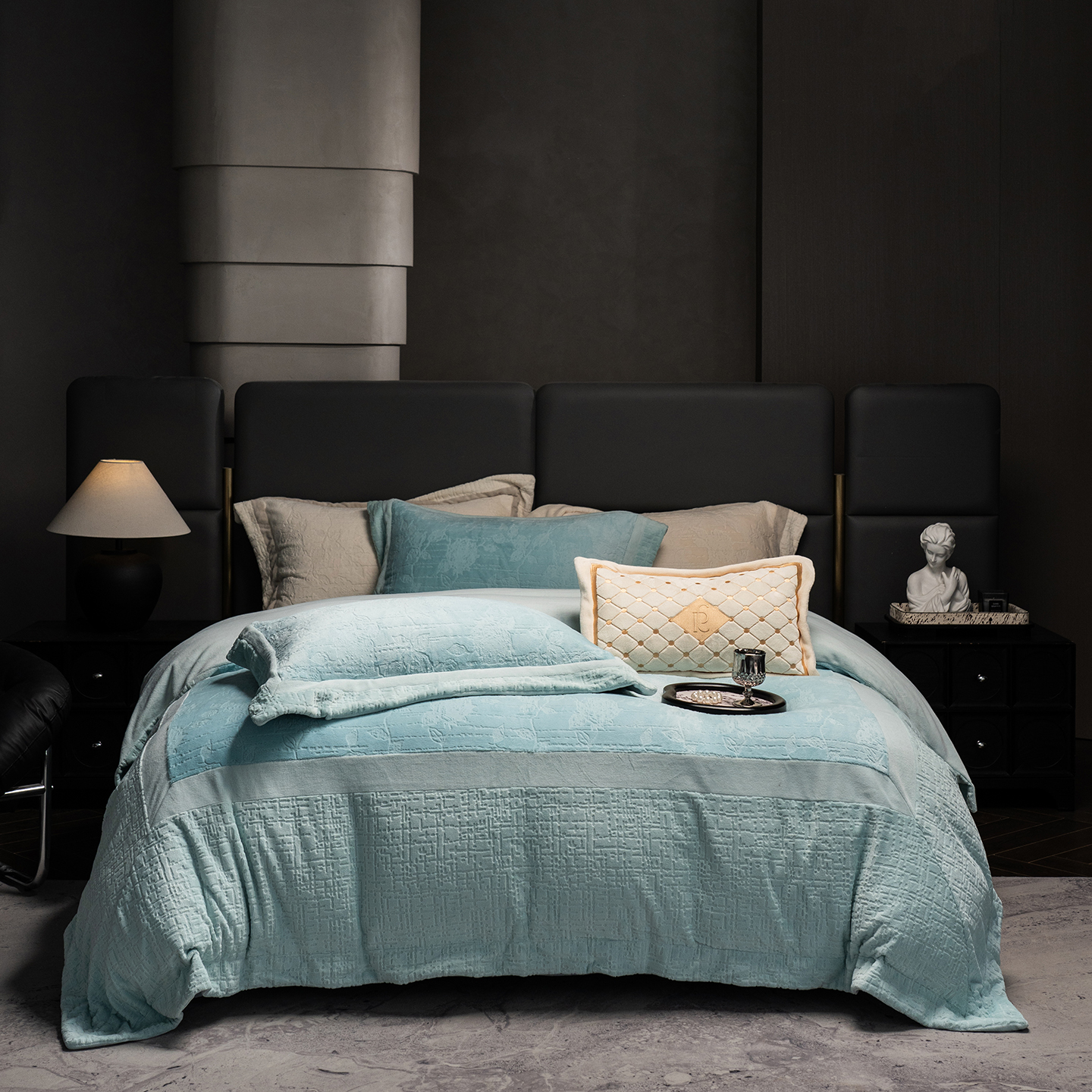 (总)蓝梦 2025新款全消光雕花牛奶绒四件套-夕雾玫瑰
