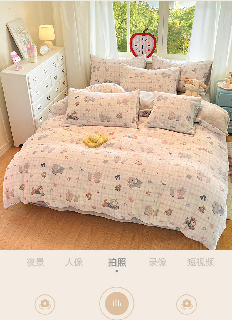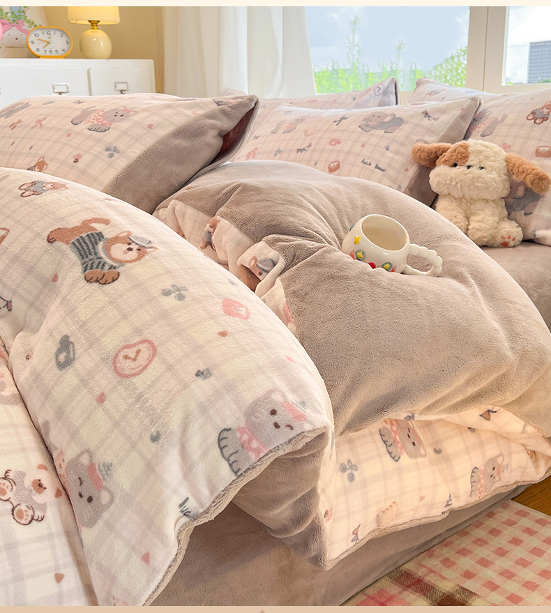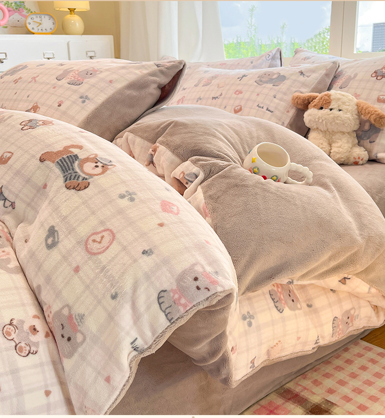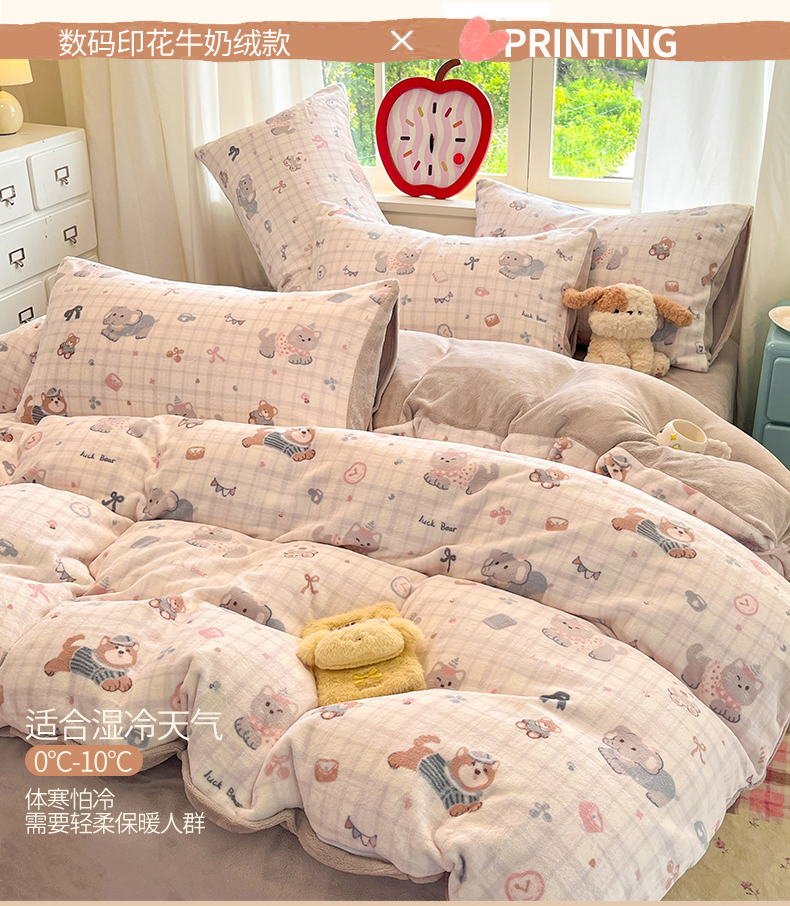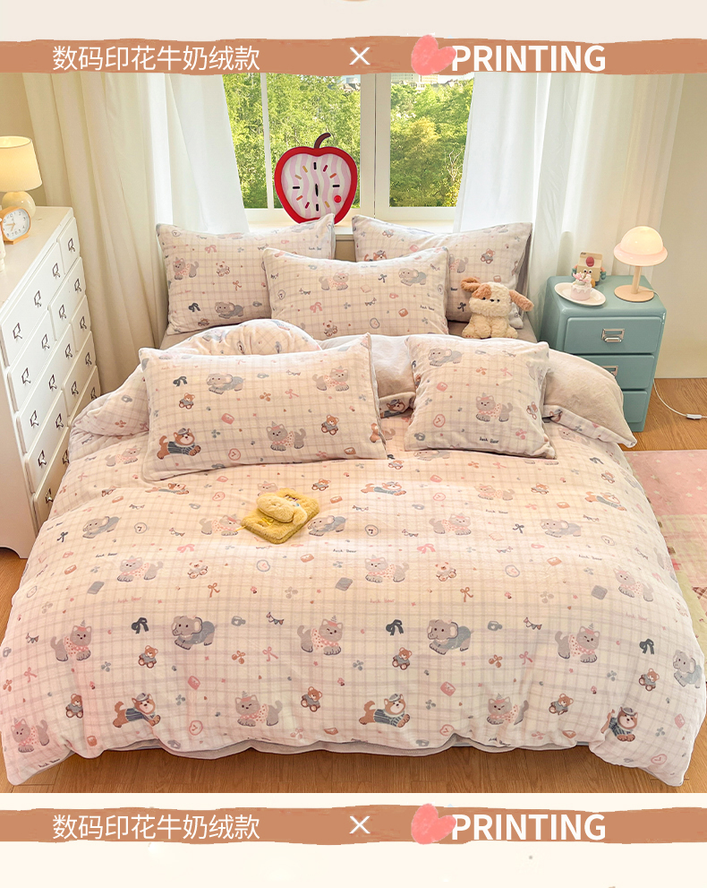 (总)云棉坊 2025新款高克重卡通牛奶绒四件套-印花系列,波点熊,彩点小象,打趣熊猫,粉色kt,格子兔,精灵仔,开心狗,甜美女孩,小甜露比,休闲一刻