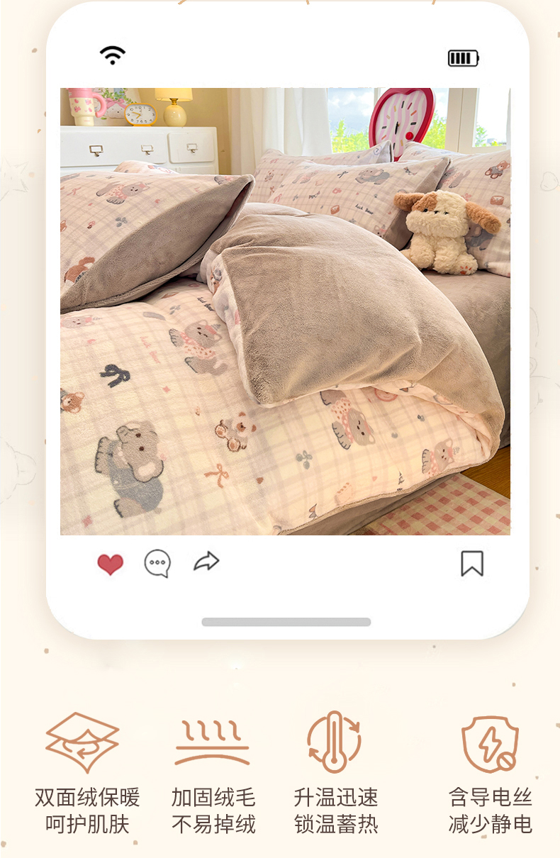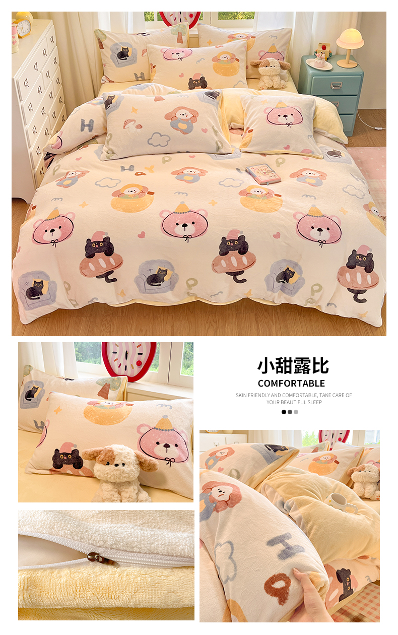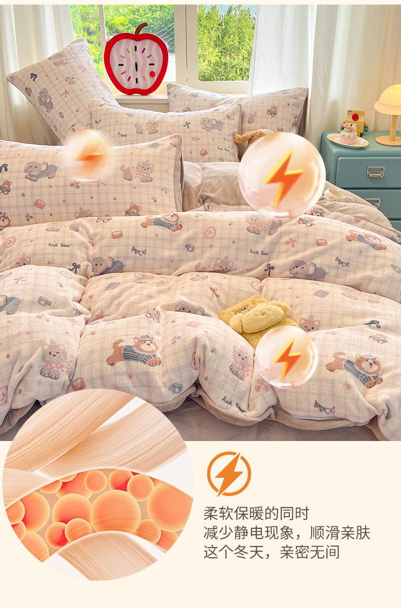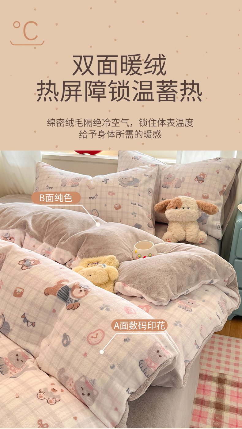 (总)云棉坊 2025新款高克重卡通牛奶绒四件套-印花系列,波点熊,彩点小象,打趣熊猫,粉色kt,格子兔,精灵仔,开心狗,甜美女孩,小甜露比,休闲一刻