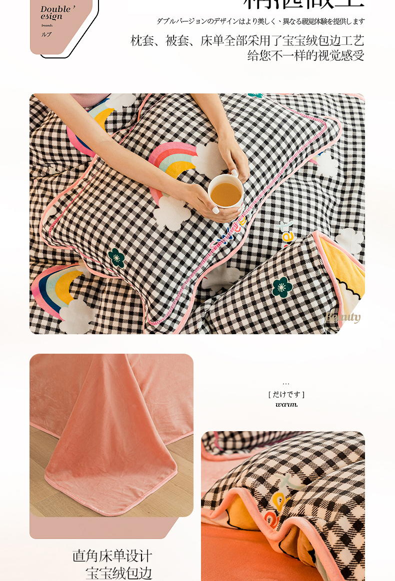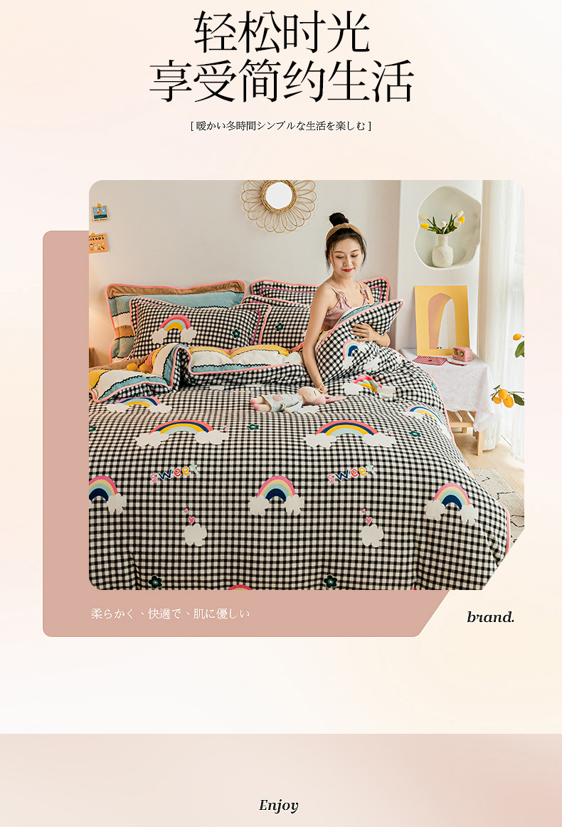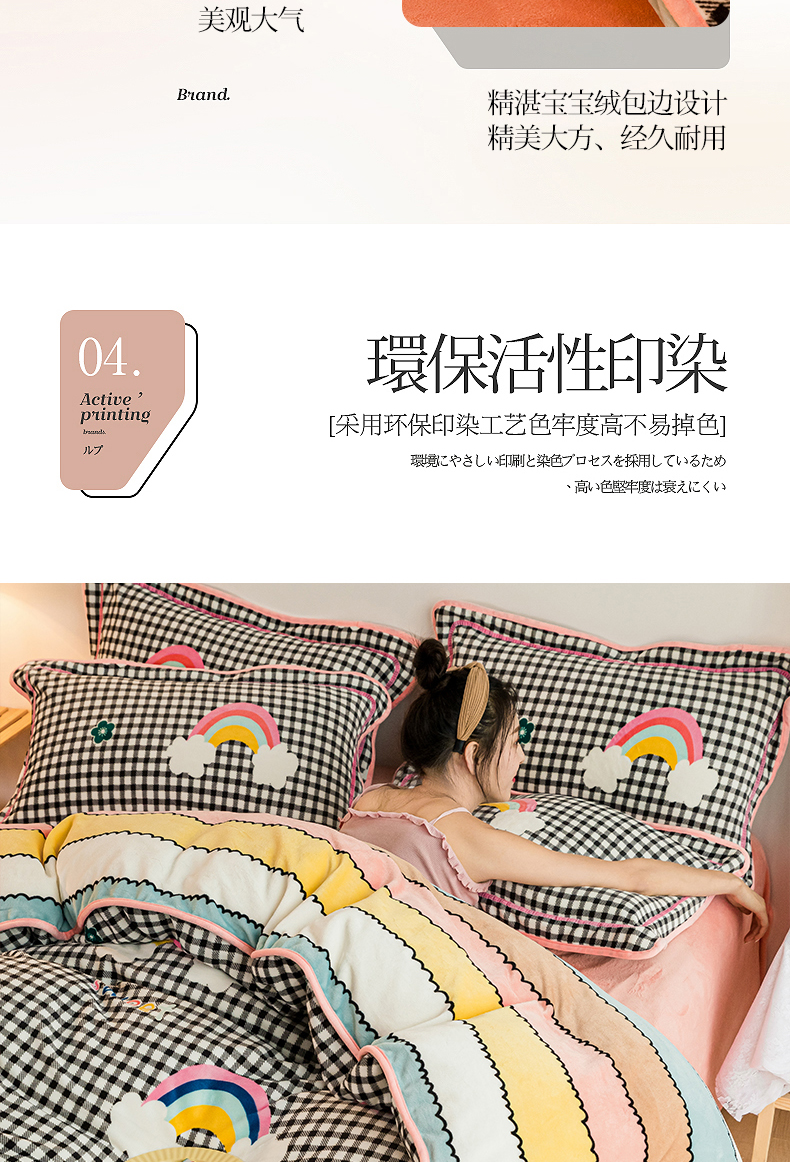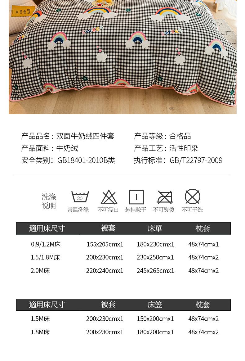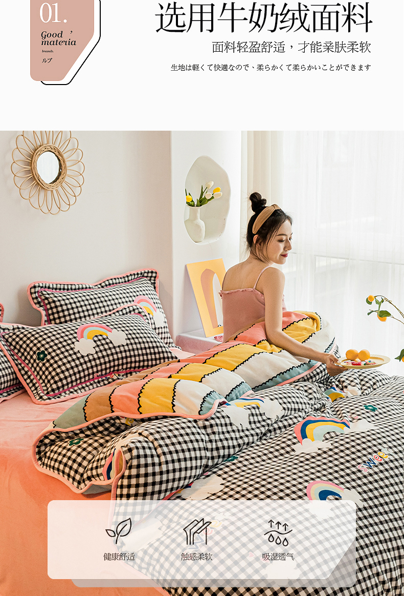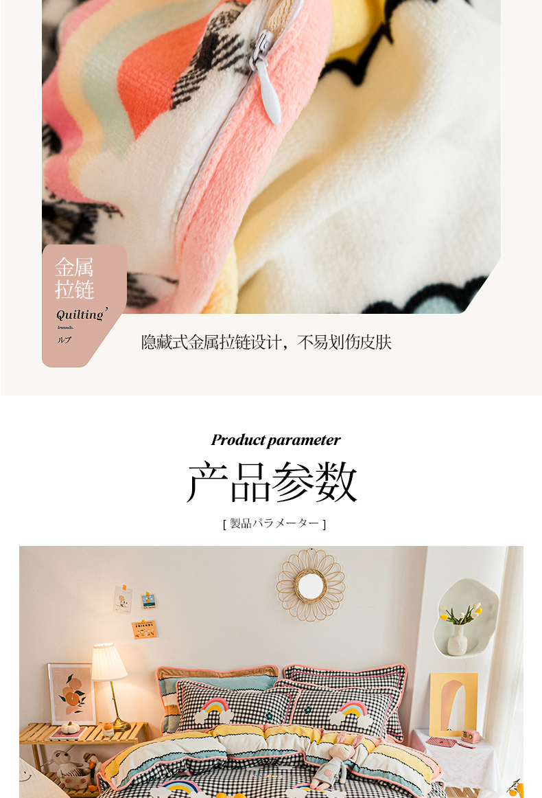 商品名称:琪格格纺织 2025新款A牛奶绒B兔兔绒保暖印花四件套 牛奶绒格子彩虹