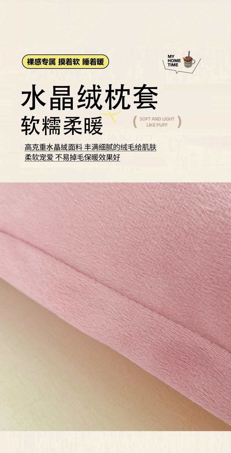 商品名称:梦舒羽 2025新款水晶绒枕套宿舍单人枕芯套枕头内胆套一对装 豆沙粉