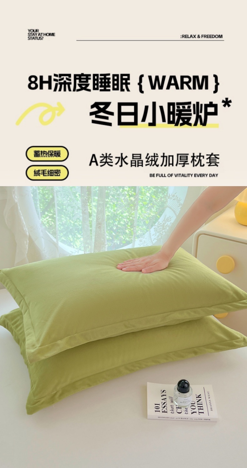 商品名称:梦舒羽 2025新款水晶绒枕套宿舍单人枕芯套枕头内胆套一对装 苹果绿
