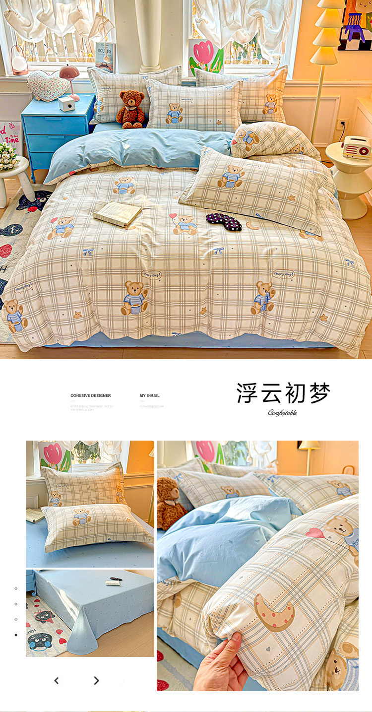 当前位置: 91家纺网 > 商品网购 > 床品套件 > 四件套 > 全棉普通四件套 > 卡普纯棉全棉四件套13070喷气床单款床笠款三件套 浮云初梦