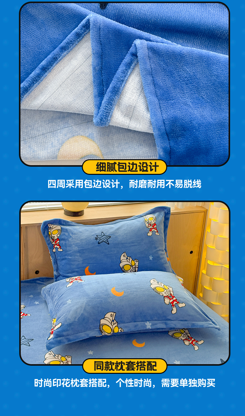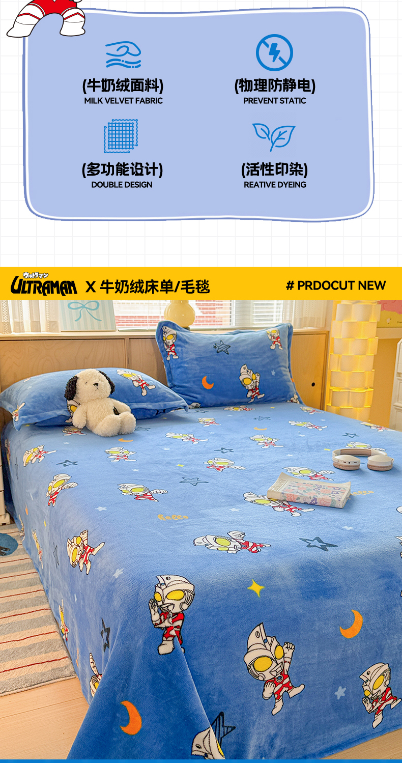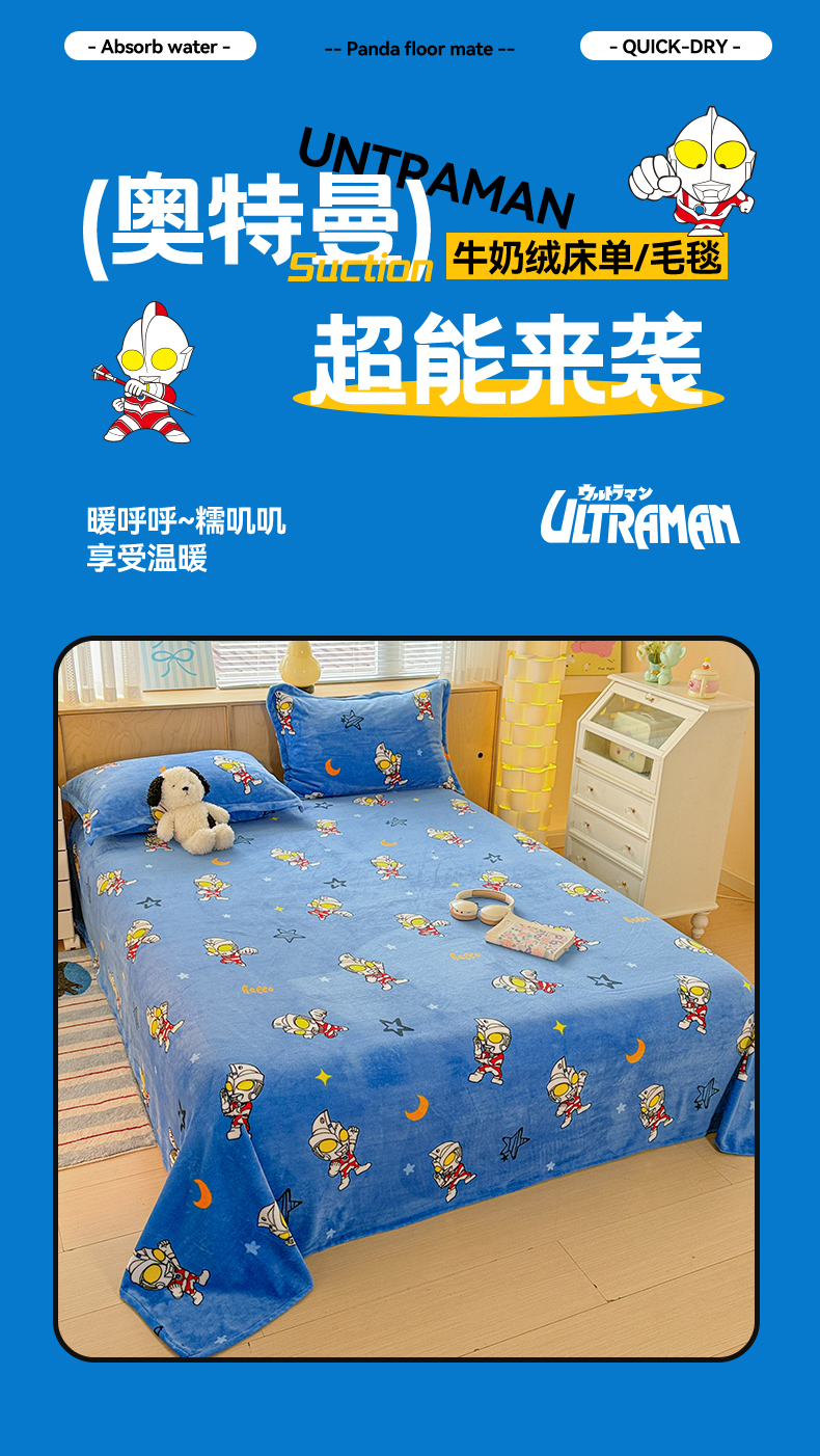 • 91家纺网 家纺一手货源 找家纺 名兮家居 2025新款经典奥特曼-三丽鸥高克重牛奶绒床单 艾斯