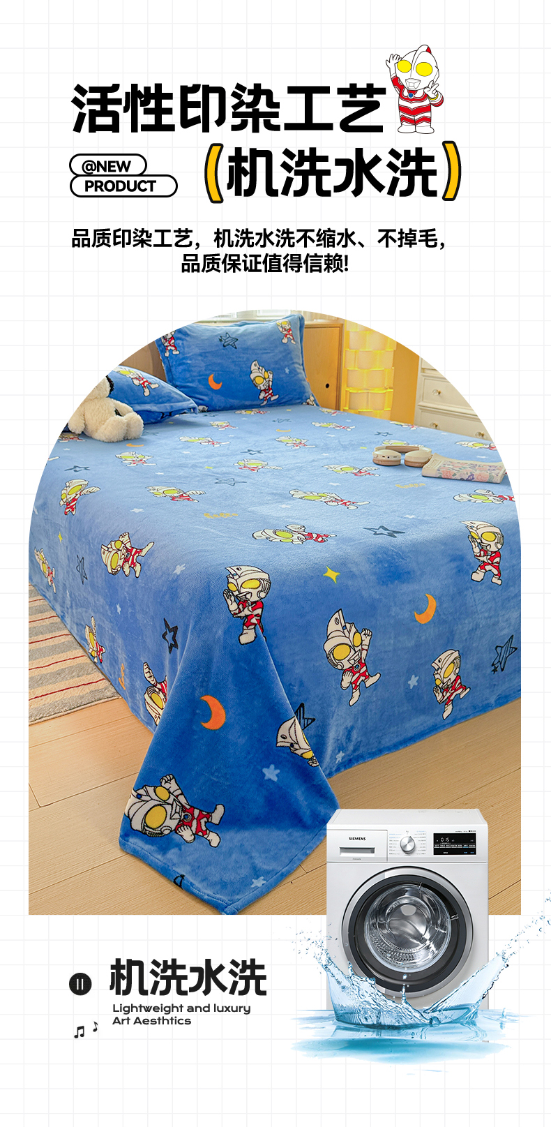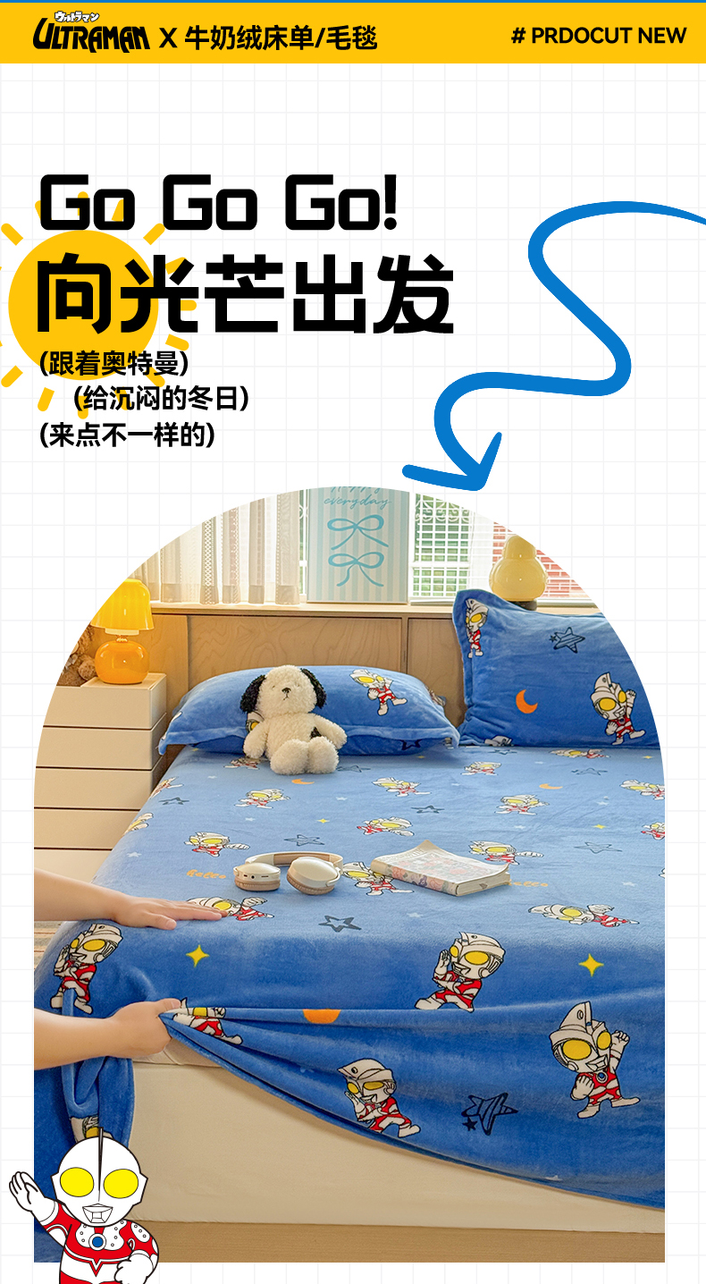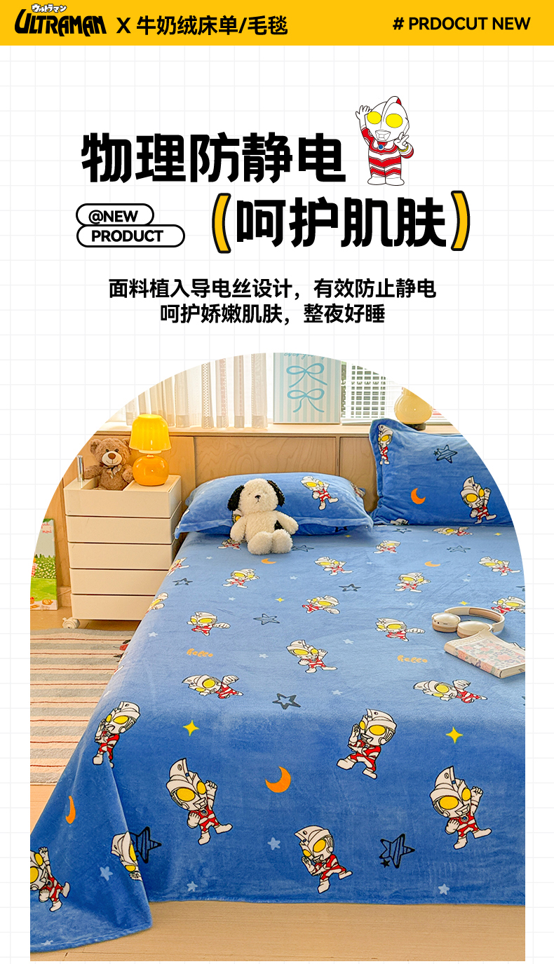 • 91家纺网 家纺一手货源 找家纺 名兮家居 2025新款经典奥特曼-三丽鸥高克重牛奶绒床单 艾斯