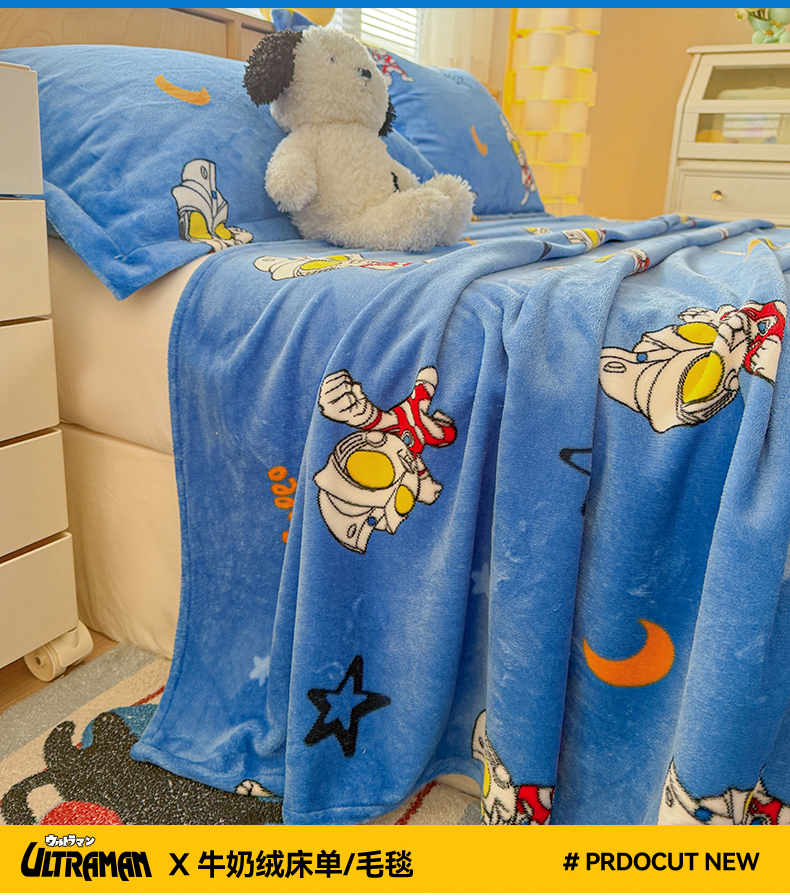 名兮家居 2025新款经典奥特曼-三丽鸥高克重牛奶绒床单 艾斯