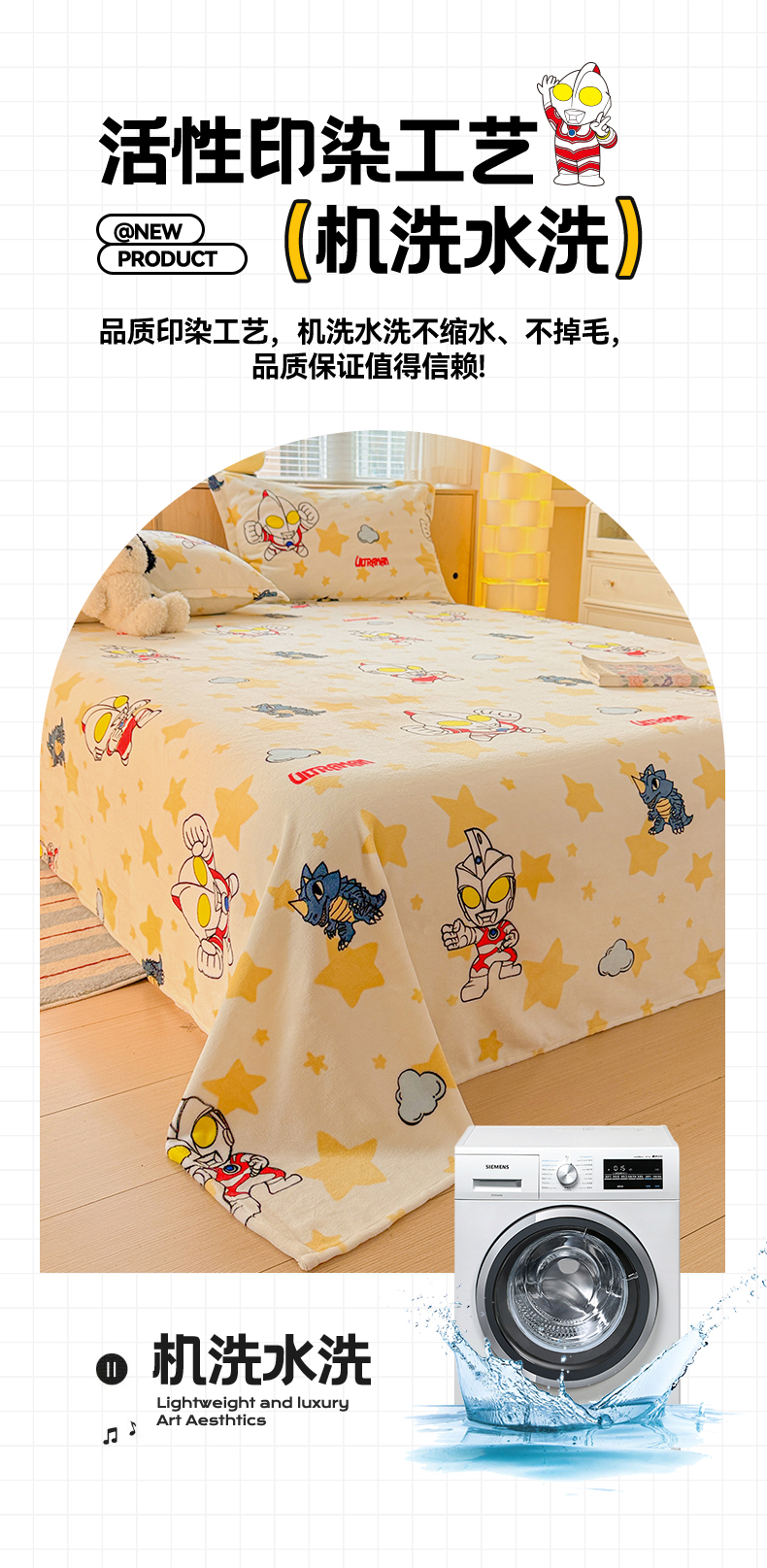 • 91家纺网 家纺一手货源 找家纺 名兮家居 2025新款经典奥特曼-三丽鸥高克重牛奶绒床单 星空战士