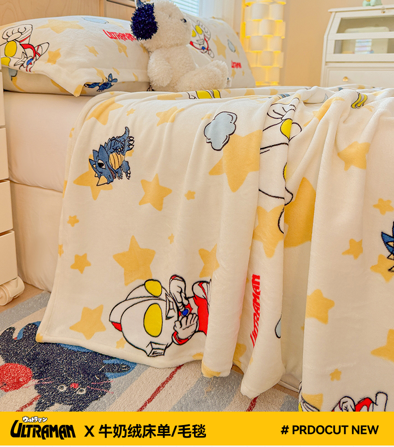 名兮家居 2025新款经典奥特曼-三丽鸥高克重牛奶绒床单 星空战士