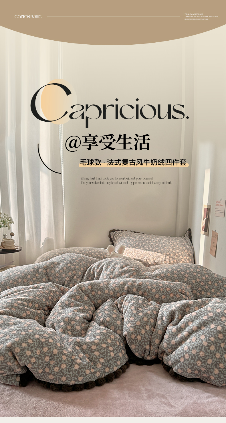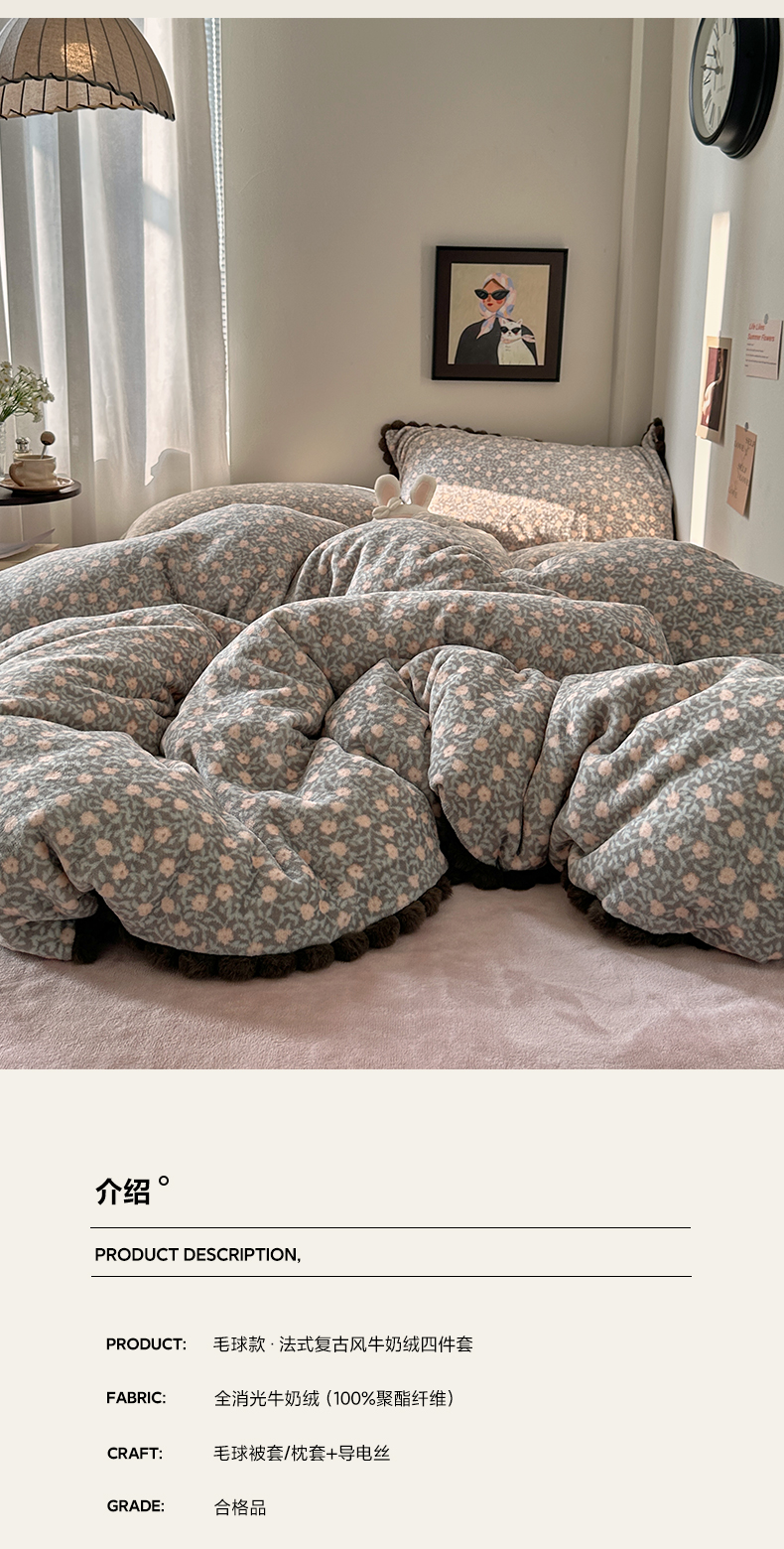 当前位置: 91家纺网 > 商品网购 > 床品套件 > 四件套 > 牛奶绒四件套 > 艾咪-Amy ntmy 2025新款毛球款法式少女风牛奶绒四件套 丽夏