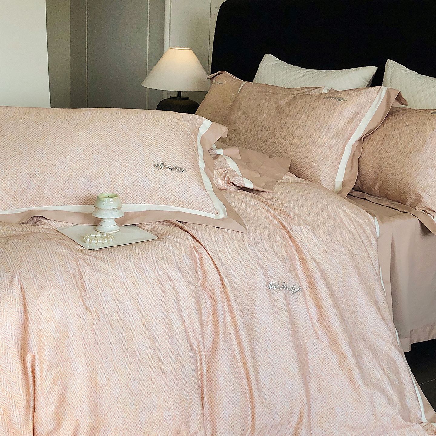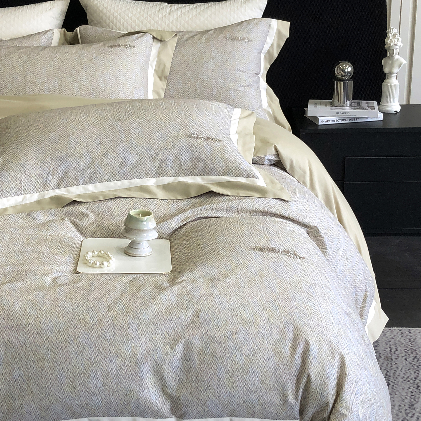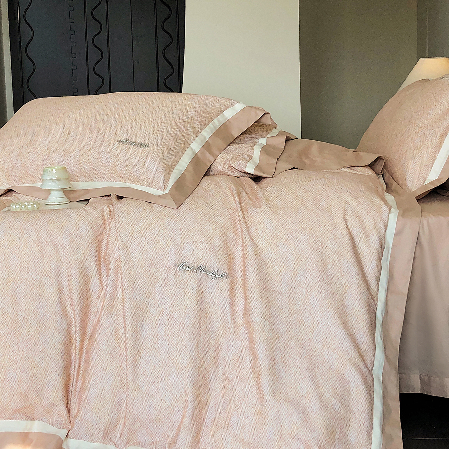 (总)佳汐蓝家纺 2025新款全棉60支磨毛肌理纹撞色拼边四件套-瑶雅系列